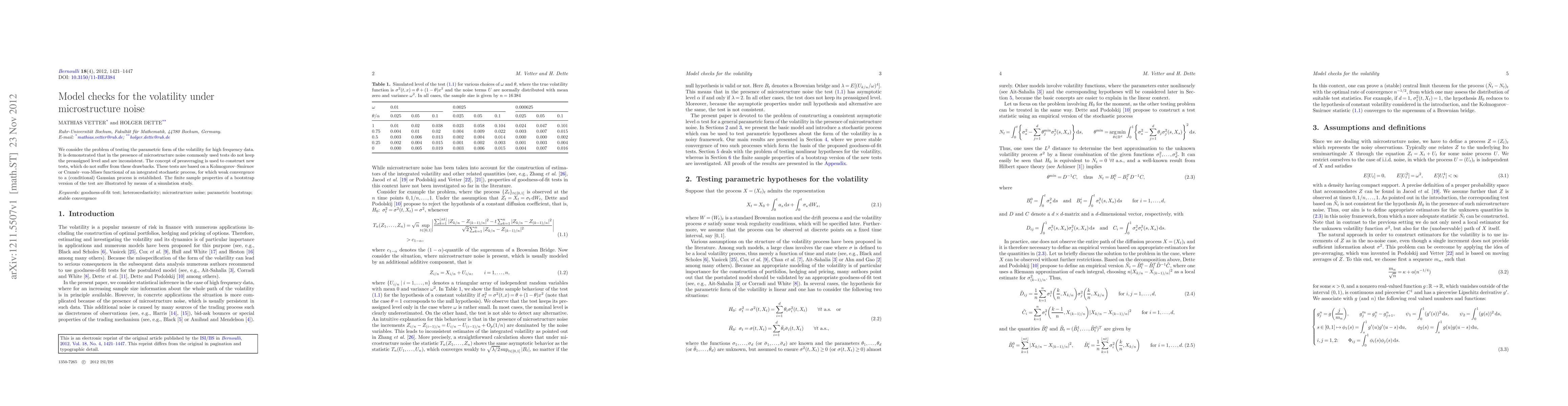New tests for volatility in high-frequency data reject existing methods that fail due to microstructure noise, using a preaveraging approach based on Kolmogorov-Smirnov or Cramer-von-Mises statistics.