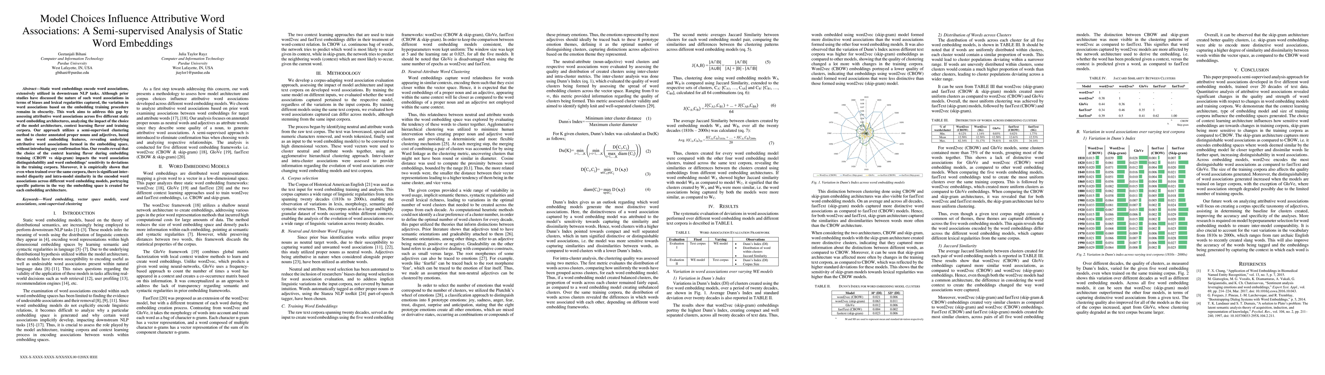 Static word embeddings encode word associations, extensively utilized in downstream NLP tasks. Although prior studies have discussed the nature of such word associations in terms of biases and lexical regularities captured, the variation in word associations based on the embedding training procedure remains in obscurity. This work aims to address this gap by assessing attributive word associations across five different static word embedding architectures, analyzing the impact of the choice of the model architecture, context learning flavor and training corpora. Our approach utilizes a semi-supervised clustering method to cluster annotated proper nouns and adjectives, based on their word embedding features, revealing underlying attributive word associations formed in the embedding space, without introducing any confirmation bias. Our results reveal that the choice of the context learning flavor during embedding training (CBOW vs skip-gram) impacts the word association distinguishability and word embeddings' sensitivity to deviations in the training corpora. Moreover, it is empirically shown that even when trained over the same corpora, there is significant inter-model disparity and intra-model similarity in the encoded word associations across different word embedding models, portraying specific patterns in the way the embedding space is created for each embedding architecture.