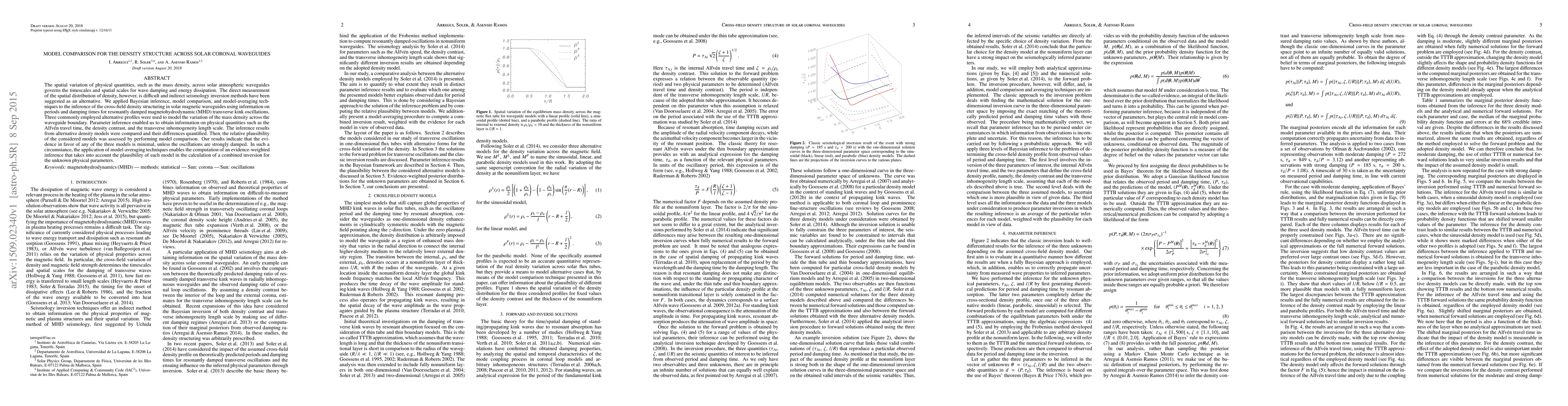 This research compares three models to infer the density structure across solar coronal waveguides using Bayesian inference and model-averaging techniques. The results suggest minimal evidence favoring any single model, but model-averaging provides a combined inference when oscillations are strongly damped.