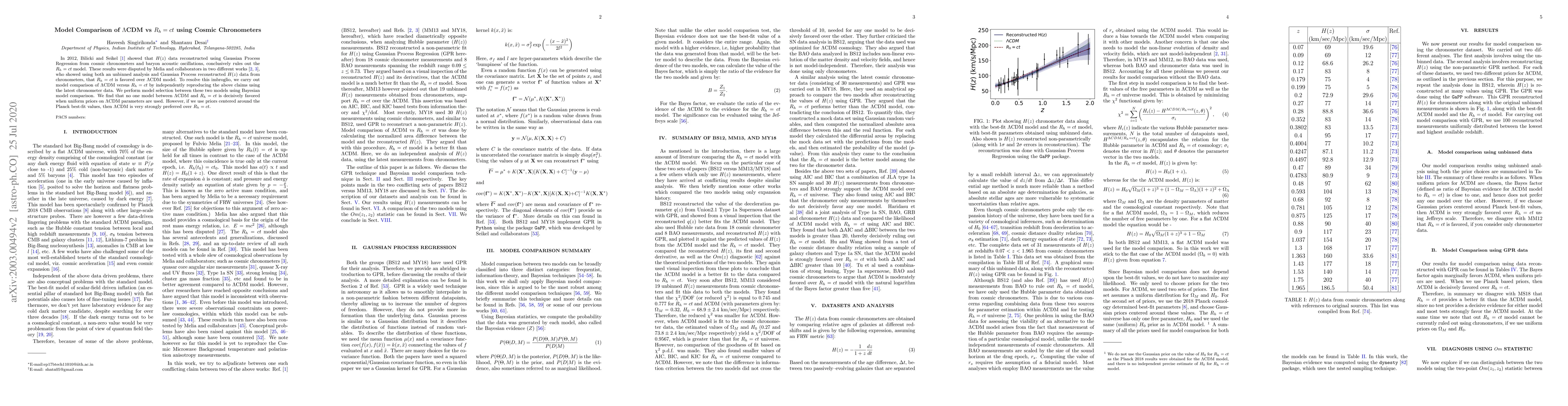 In 2012, Bilicki and Seikel (arXiv:1206.5130) showed that $H(z)$ data reconstructed using Gaussian Process Regression from cosmic chronometers and BAO, conclusively rules out the $R_h=ct$ model. These results were disputed by Melia and collaborators in two different works (arXiv:1304.1802 and arXiv:1802.02255), who showed using both an unbinned analysis and Gaussian Process reconstructed $H(z)$ data from chronometers, that $R_h=ct$ is favored over $\Lambda$CDM model. To resolve this imbroglio, we carry out model comparison of $\Lambda$CDM versus $R_h=ct$ by independently reproducing the above claims using latest chronometer data. We perform model selection between these two models using Bayesian model comparison. We find that no one model between $\Lambda$CDM and $R_h=ct$ is decisively favored when uniform priors on $\Lambda$CDM parameters are used. However, if we use priors centered around the Planck best-fit values, then $\Lambda$CDM is very strongly preferred over $R_h=ct$.