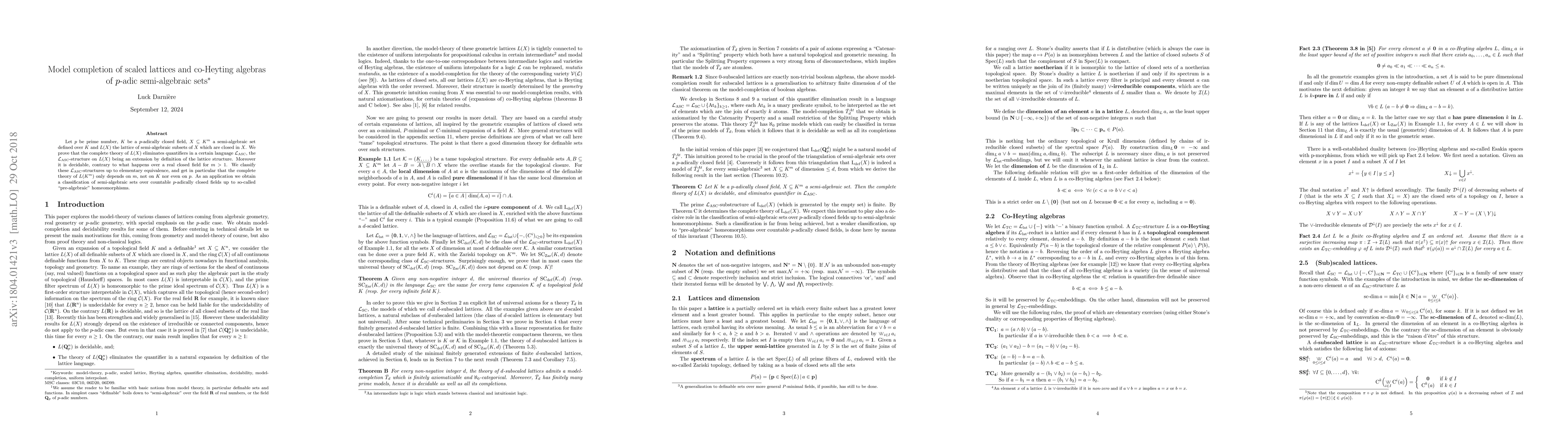This paper proves that the complete theory of the lattice of semi-algebraic subsets of a p-adically closed field eliminates quantifiers in a defined language LASC, making the theory decidable. It also classifies these structures up to elementary equivalence, independent of the field's specific characteristics.