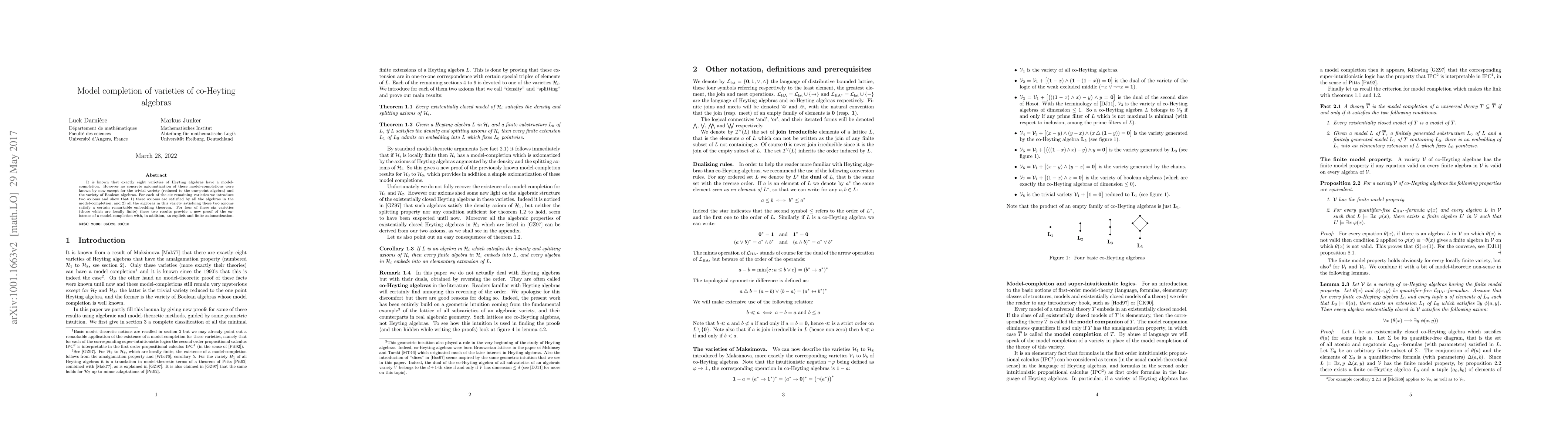 This paper identifies and explicitly axiomatizes the model-completions for six out of eight varieties of Heyting algebras, providing concrete axioms for four locally finite varieties where a model-completion was previously unproven.