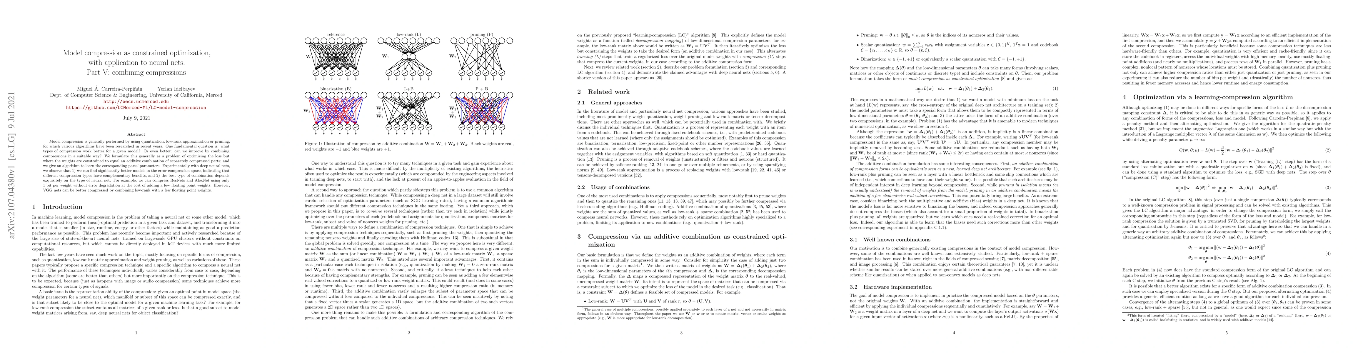 This paper explores model compression through constrained optimization, focusing on the combination of different compression techniques like quantization, low-rank approximation, and pruning. It proposes an algorithm to optimize the loss while constraining the weights to an additive combination of separately compressed parts, demonstrating that combining compressions can yield better models with complementary benefits, especially for different neural network architectures.