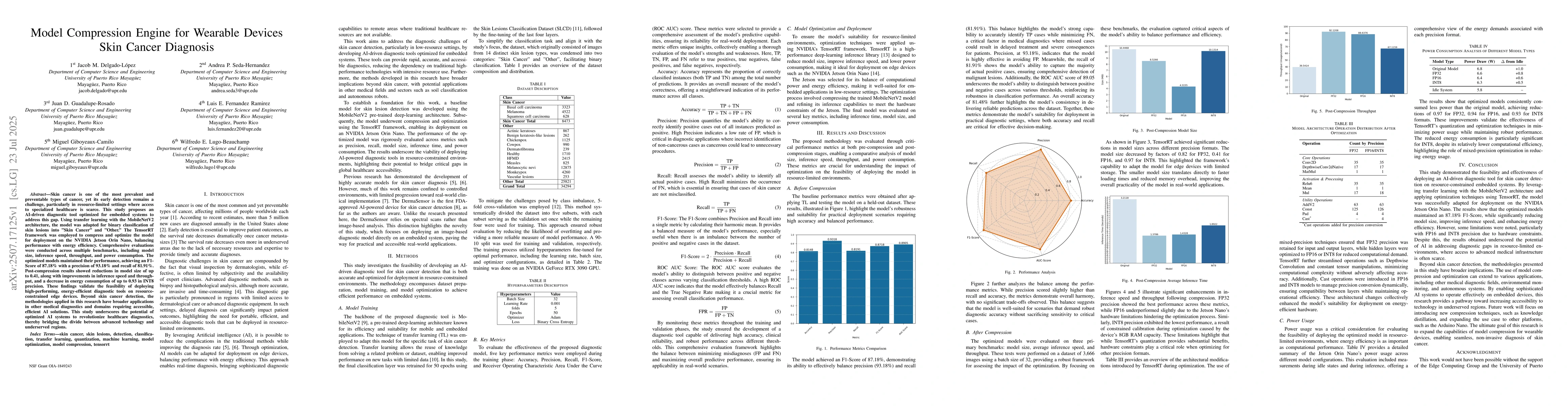 Skin cancer is one of the most prevalent and preventable types of cancer, yet its early detection remains a challenge, particularly in resource-limited settings where access to specialized healthcare is scarce. This study proposes an AI-driven diagnostic tool optimized for embedded systems to address this gap. Using transfer learning with the MobileNetV2 architecture, the model was adapted for binary classification of skin lesions into "Skin Cancer" and "Other." The TensorRT framework was employed to compress and optimize the model for deployment on the NVIDIA Jetson Orin Nano, balancing performance with energy efficiency. Comprehensive evaluations were conducted across multiple benchmarks, including model size, inference speed, throughput, and power consumption. The optimized models maintained their performance, achieving an F1-Score of 87.18% with a precision of 93.18% and recall of 81.91%. Post-compression results showed reductions in model size of up to 0.41, along with improvements in inference speed and throughput, and a decrease in energy consumption of up to 0.93 in INT8 precision. These findings validate the feasibility of deploying high-performing, energy-efficient diagnostic tools on resource-constrained edge devices. Beyond skin cancer detection, the methodologies applied in this research have broader applications in other medical diagnostics and domains requiring accessible, efficient AI solutions. This study underscores the potential of optimized AI systems to revolutionize healthcare diagnostics, thereby bridging the divide between advanced technology and underserved regions.