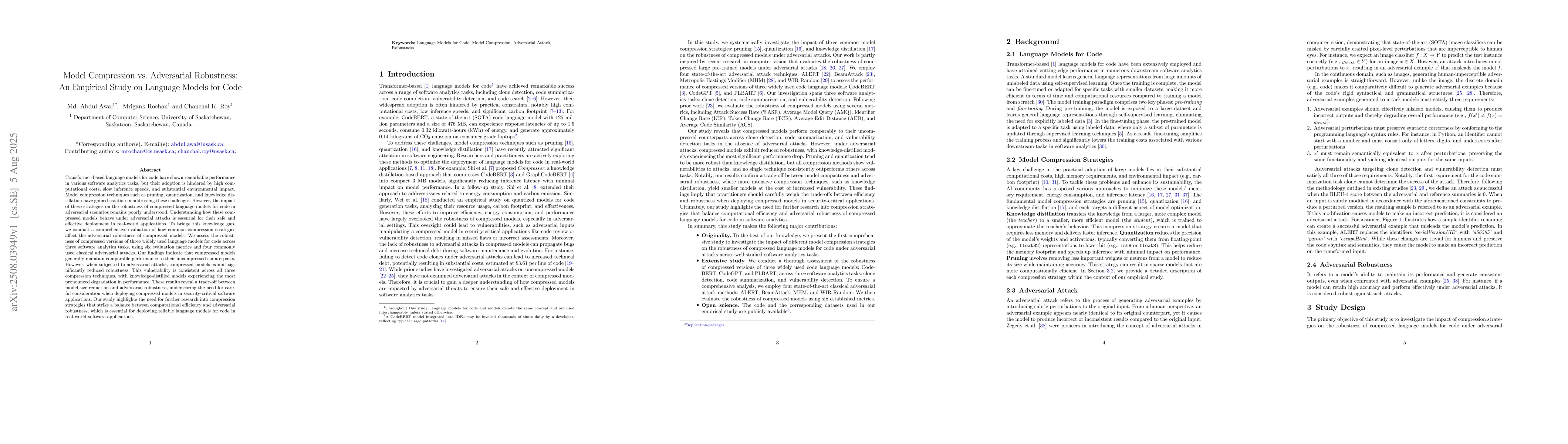Transformer-based language models for code have shown remarkable performance in various software analytics tasks, but their adoption is hindered by high computational costs, slow inference speeds, and substantial environmental impact. Model compression techniques such as pruning, quantization, and knowledge distillation have gained traction in addressing these challenges. However, the impact of these strategies on the robustness of compressed language models for code in adversarial scenarios remains poorly understood. Understanding how these compressed models behave under adversarial attacks is essential for their safe and effective deployment in real-world applications. To bridge this knowledge gap, we conduct a comprehensive evaluation of how common compression strategies affect the adversarial robustness of compressed models. We assess the robustness of compressed versions of three widely used language models for code across three software analytics tasks, using six evaluation metrics and four commonly used classical adversarial attacks. Our findings indicate that compressed models generally maintain comparable performance to their uncompressed counterparts. However, when subjected to adversarial attacks, compressed models exhibit significantly reduced robustness. These results reveal a trade-off between model size reduction and adversarial robustness, underscoring the need for careful consideration when deploying compressed models in security-critical software applications. Our study highlights the need for further research into compression strategies that strike a balance between computational efficiency and adversarial robustness, which is essential for deploying reliable language models for code in real-world software applications.