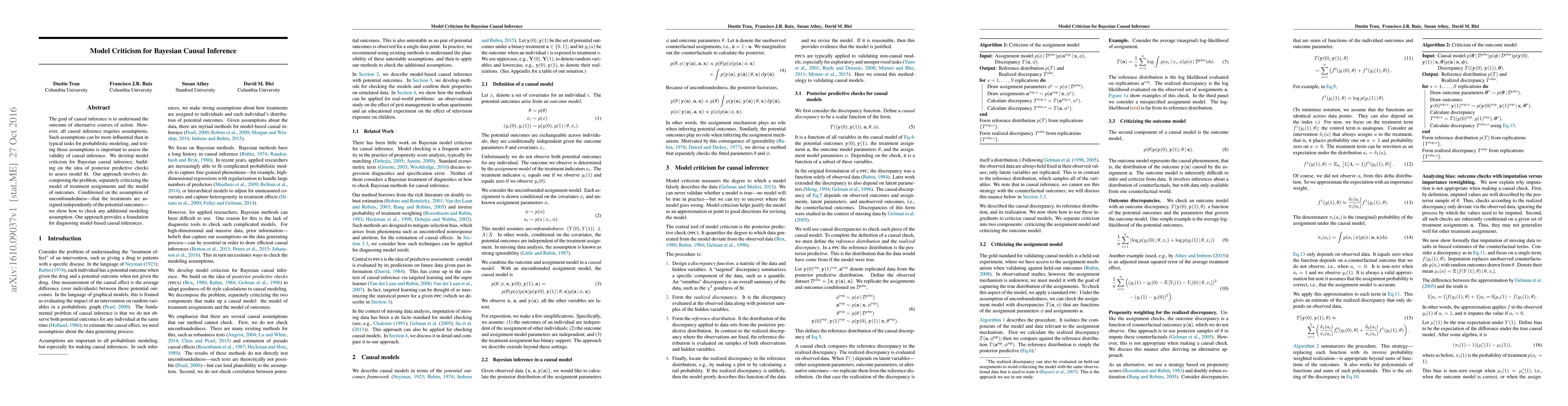 This paper develops a method for model criticism in Bayesian causal inference, focusing on assessing the validity of assumptions underlying causal inference. It uses posterior predictive checks to separately evaluate the model of treatment assignments and the model of outcomes, providing a foundation for diagnosing model-based causal inferences.