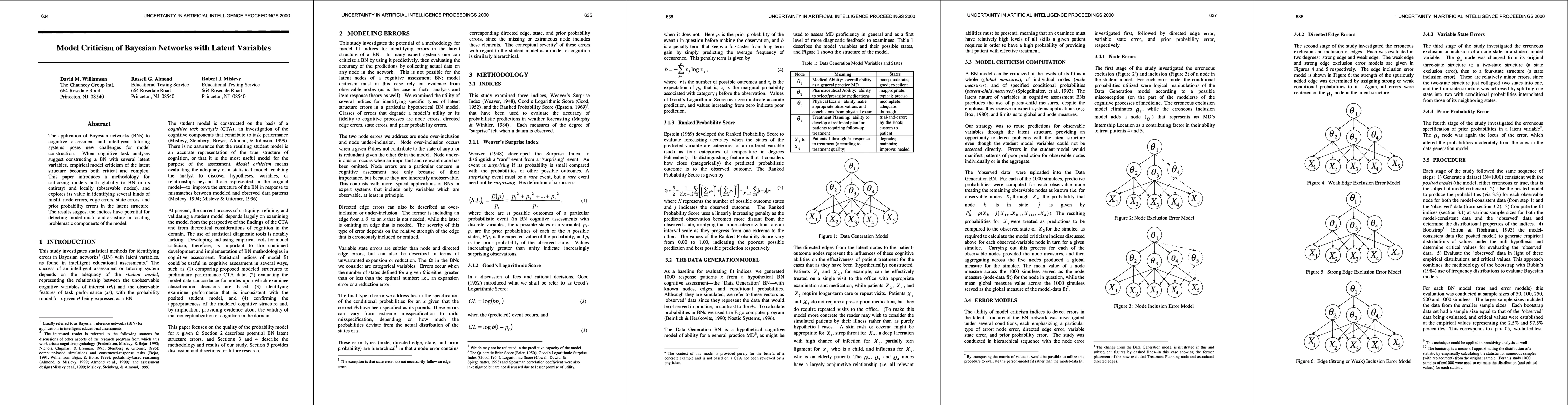 The application of Bayesian networks (BNs) to cognitive assessment and intelligent tutoring systems poses new challenges for model construction. When cognitive task analyses suggest constructing a BN with several latent variables, empirical model criticism of the latent structure becomes both critical and complex. This paper introduces a methodology for criticizing models both globally (a BN in its entirety) and locally (observable nodes), and explores its value in identifying several kinds of misfit: node errors, edge errors, state errors, and prior probability errors in the latent structure. The results suggest the indices have potential for detecting model misfit and assisting in locating problematic components of the model.
