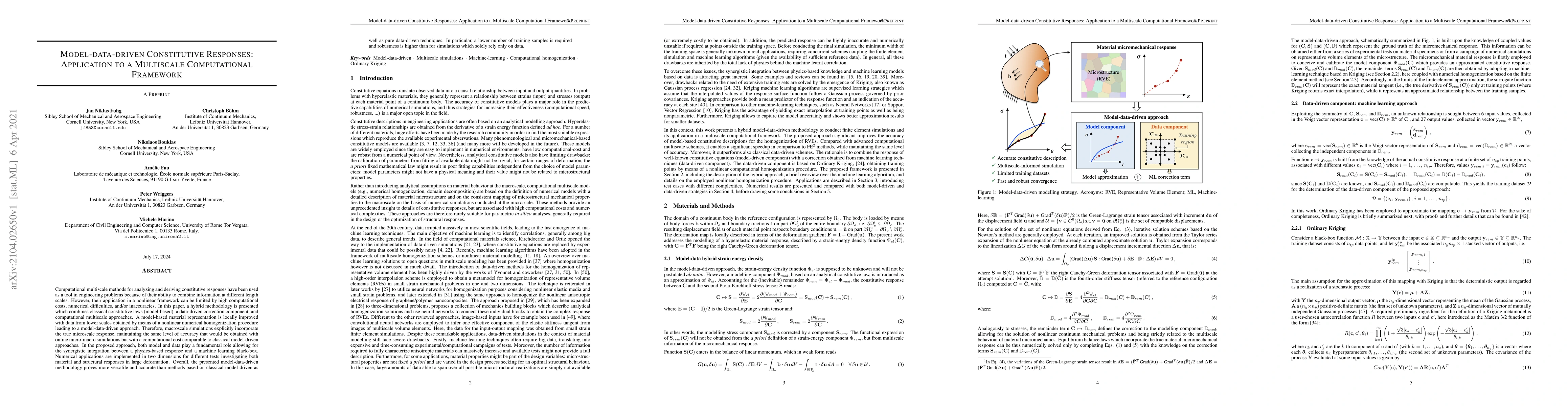 This paper introduces a hybrid methodology combining classical constitutive laws with data-driven corrections and multiscale computational techniques to improve nonlinear simulations. The approach enhances model-based material representations with data-driven corrections, achieving high accuracy with reduced computational costs.