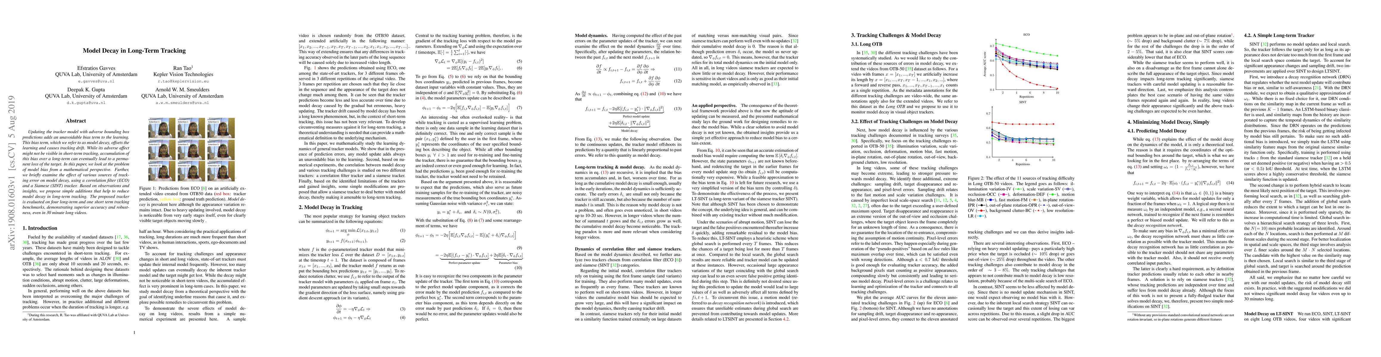 Research highlights model decay in long-term tracking as a bias term that causes tracking drift and loss of target over time. Proposed additions reduce this bias, improving tracker accuracy and robustness on various benchmarks.