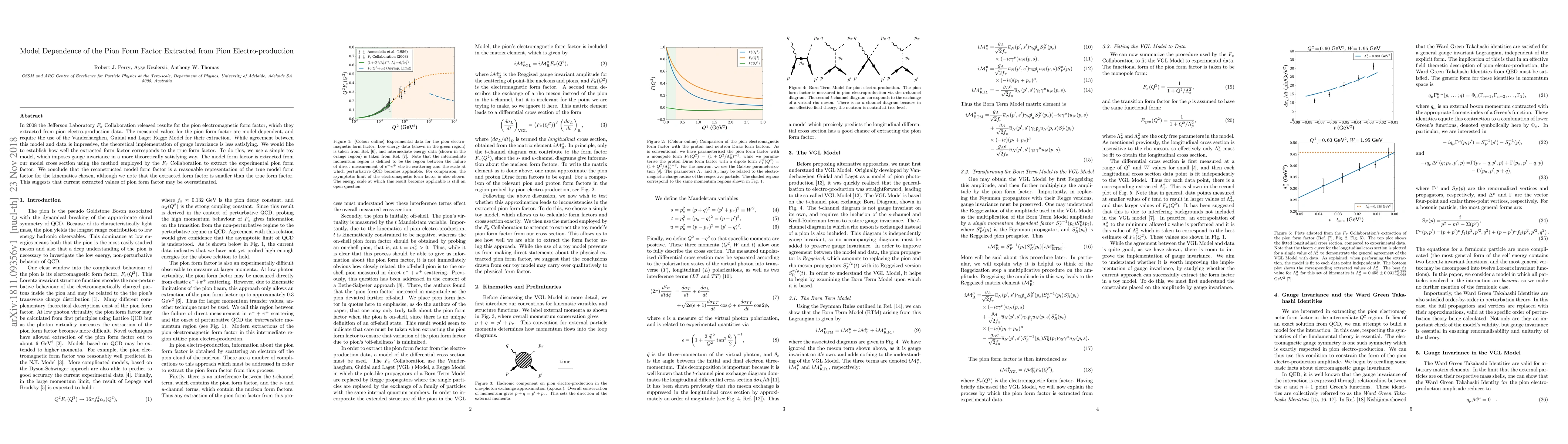 In 2008 the Jefferson Laboratory $F_\pi$ Collaboration released results for the pion electromagnetic form factor, which they extracted from pion electro-production data. The measured values for the pion form factor are model dependent, and require the use of the Vanderhaeghen, Guidal and Laget Regge Model for their extraction. While agreement between this model and data is impressive, the theoretical implementation of gauge invariance is less satisfying. We would like to establish how well the extracted form factor corresponds to the true form factor. To do this, we use a simple toy model, which imposes gauge invariance in a more theoretically satisfying way. The model form factor is extracted from our model cross section using the method employed by the $F_\pi$ Collaboration to extract the experimental pion form factor. We conclude that the reconstructed model form factor is a reasonable representation of the true model form factor for the kinematics chosen, although we note that the extracted form factor is smaller than the true form factor. This suggests that current extracted values of pion form factor may be overestimated.