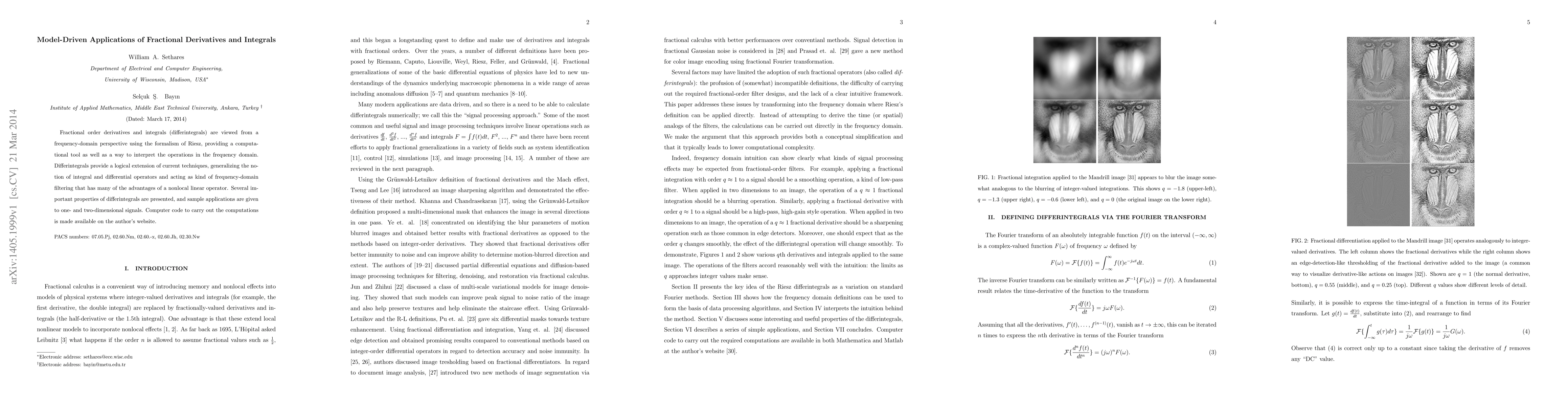 Fractional order derivatives and integrals (differintegrals) are viewed from a frequency-domain perspective using the formalism of Riesz, providing a computational tool as well as a way to interpret the operations in the frequency domain. Differintegrals provide a logical extension of current techniques, generalizing the notion of integral and differential operators and acting as kind of frequency-domain filtering that has many of the advantages of a nonlocal linear operator. Several important properties of differintegrals are presented, and sample applications are given to one- and two-dimensional signals. Computer code to carry out the computations is made available on the author's website.