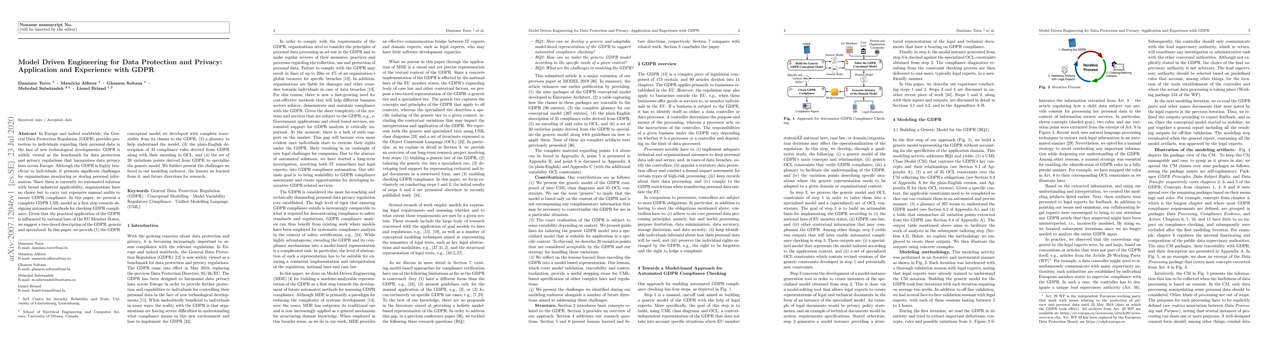 This paper introduces a comprehensive UML model for GDPR compliance, aiming to automate compliance checks. It presents a two-tiered GDPR model, a glossary, compliance rules encoded in OCL, and 20 variations points for national adaptations, alongside challenges and future research directions.