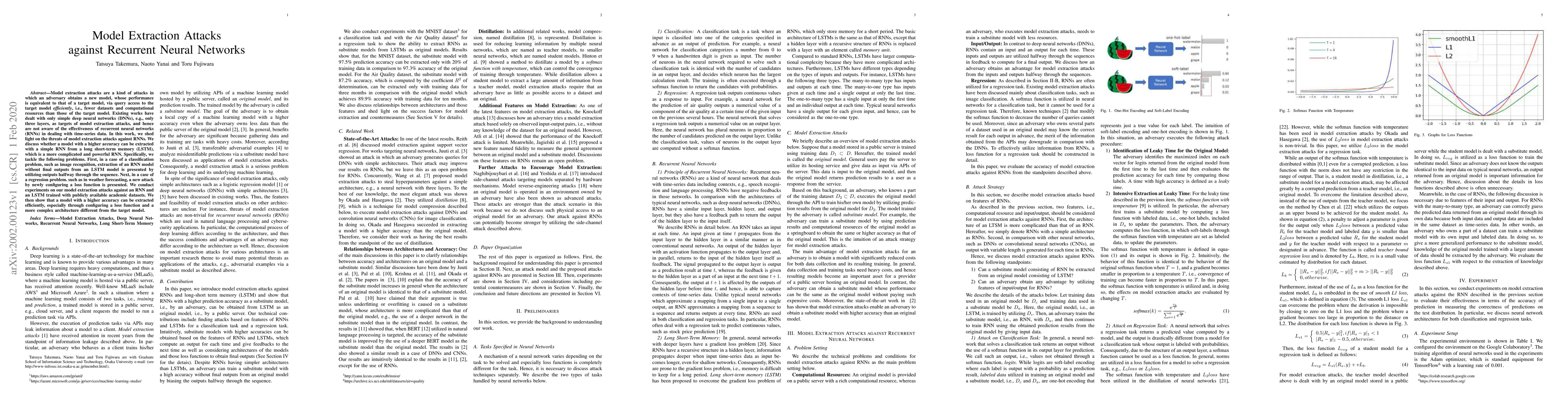 This paper investigates the vulnerabilities of recurrent neural networks (RNNs), specifically long short-term memory (LSTM) networks, to model extraction attacks. It demonstrates that simpler RNNs can be extracted from LSTMs with high accuracy, especially through strategic loss function configurations and different architectures, posing a significant threat to the security of time-series data models.