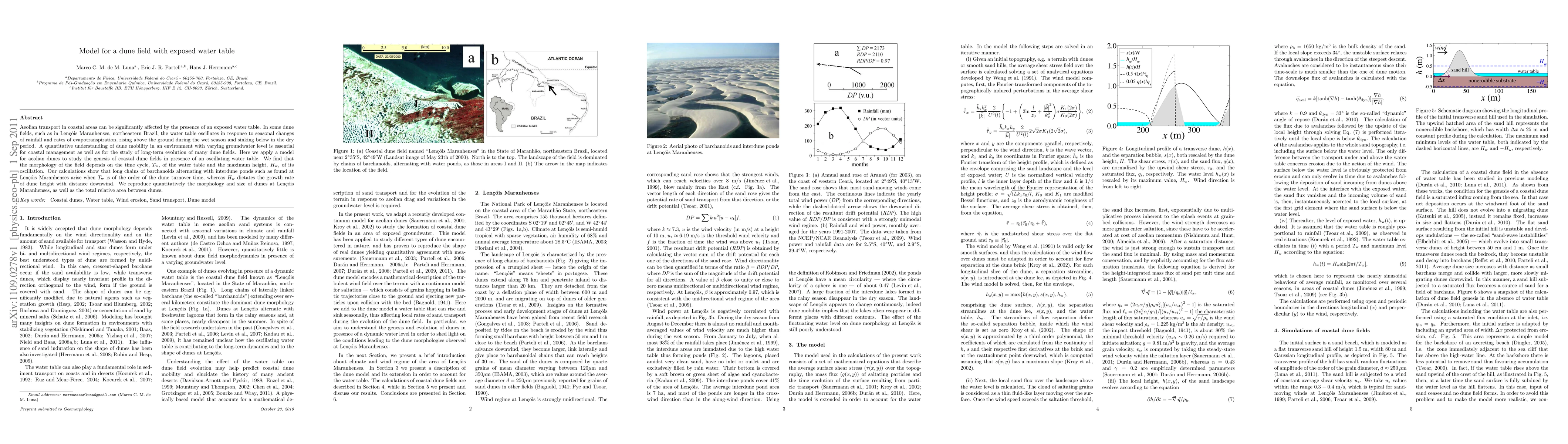 Aeolian transport in coastal areas can be significantly affected by the presence of an exposed water table. In some dune fields, such as in Len\c{c}\'ois Maranhenses, northeastern Brazil, the water table oscillates in response to seasonal changes of rainfall and rates of evapotranspiration, rising above the ground during the wet season and sinking below in the dry period. A quantitative understanding of dune mobility in an environment with varying groundwater level is essential for coastal management as well as for the study of long-term evolution of many dune fields. Here we apply a model for aeolian dunes to study the genesis of coastal dune fields in presence of an oscillating water table. We find that the morphology of the field depends on the time cycle, $T_{\mathrm{w}}$, of the water table and the maximum height, $H_{\mathrm{w}}$, of its oscillation. Our calculations show that long chains of barchanoids alternating with interdune ponds such as found at Len\c{c}\'ois Maranhenses arise when $T_{\mathrm{w}}$ is of the order of the dune turnover time, whereas $H_{\mathrm{w}}$ dictates the growth rate of dune height with distance downwind. We reproduce quantitatively the morphology and size of dunes at Len\c{c}\'ois Maranhenses, as well as the total relative area between dunes.