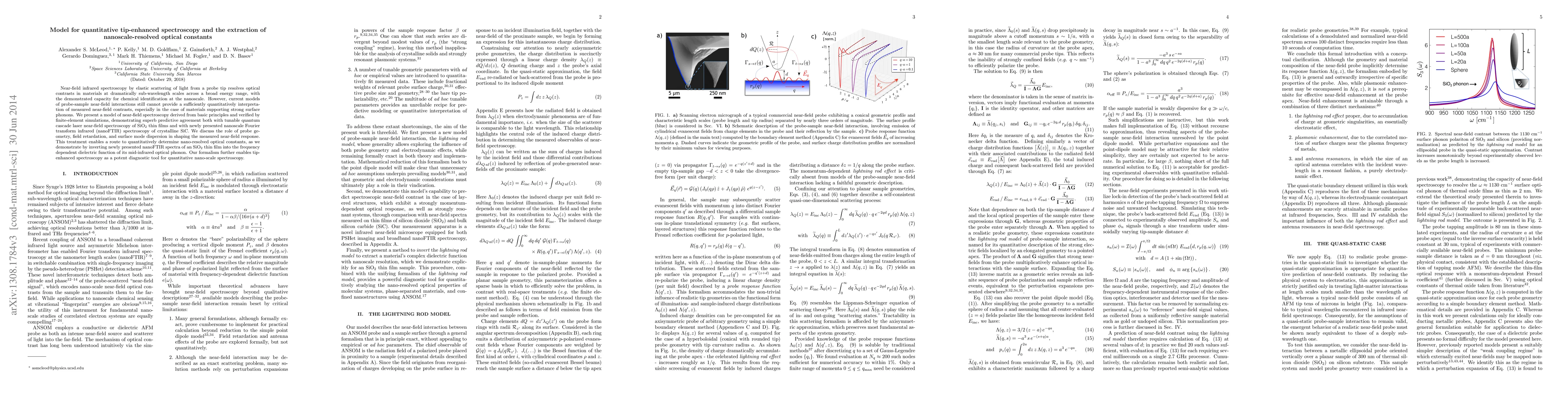 This paper presents a new quantitative model for tip-enhanced spectroscopy, validated through simulations and experiments, which accurately interprets near-field contrasts and enables the extraction of nanoscale optical constants, especially for materials with strong surface phonons. The model's success is demonstrated by its application in determining the dielectric function of SiO$_2$ thin films from nanoFTIR spectroscopy data.