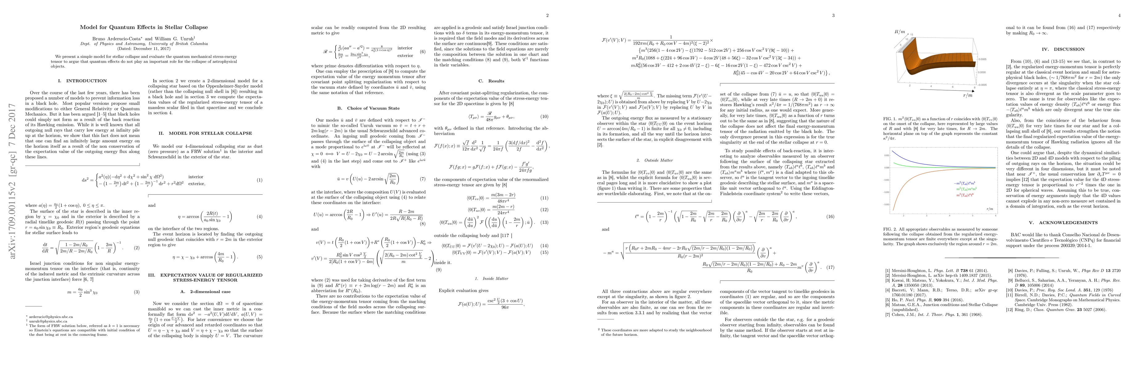 Summary: This paper introduces a straightforward model for stellar collapse, concluding that quantum mechanical stress-energy tensors do not significantly influence the collapse process of astrophysical objects.