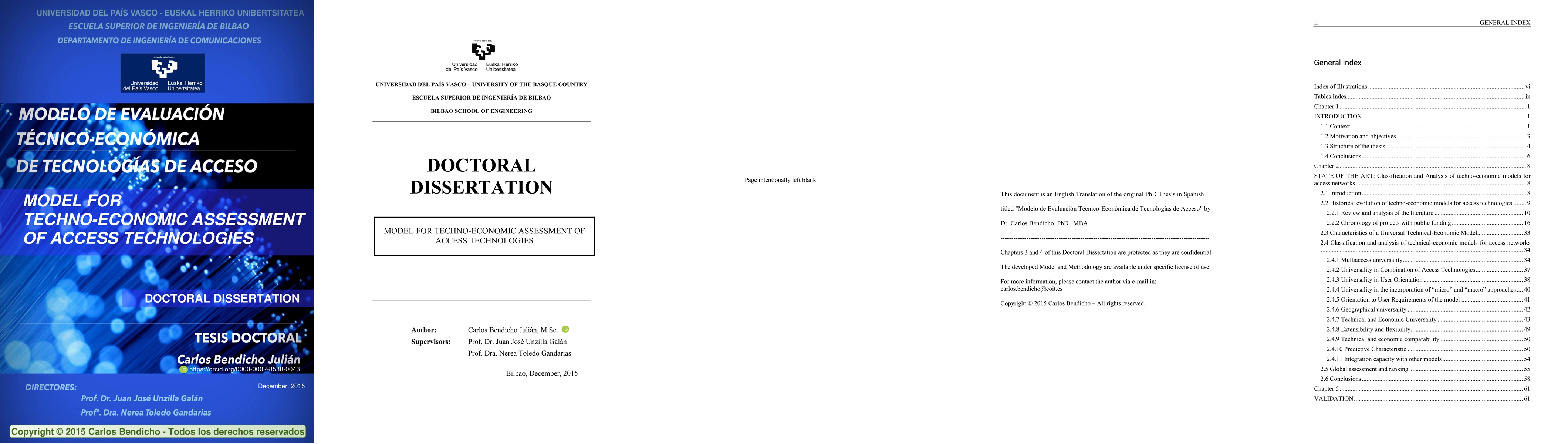 This doctoral dissertation shows State of the Art of techno-economic modeling for access network technologies, presents the characteristics a universal techno-economic model should have, and shows a classification and analysis of techno-economic models in the literature based on such characteristics. In order to reduce the gap detected in the literature, the author defines and develops a Universal Techno-Economic Model called UTEM and the corresponding methodology to industrialize techno-economic assessment in multiple domains considering all market players perspectives, also suitable for technological consulting and currently available for all industry stakeholders under specific license of use.