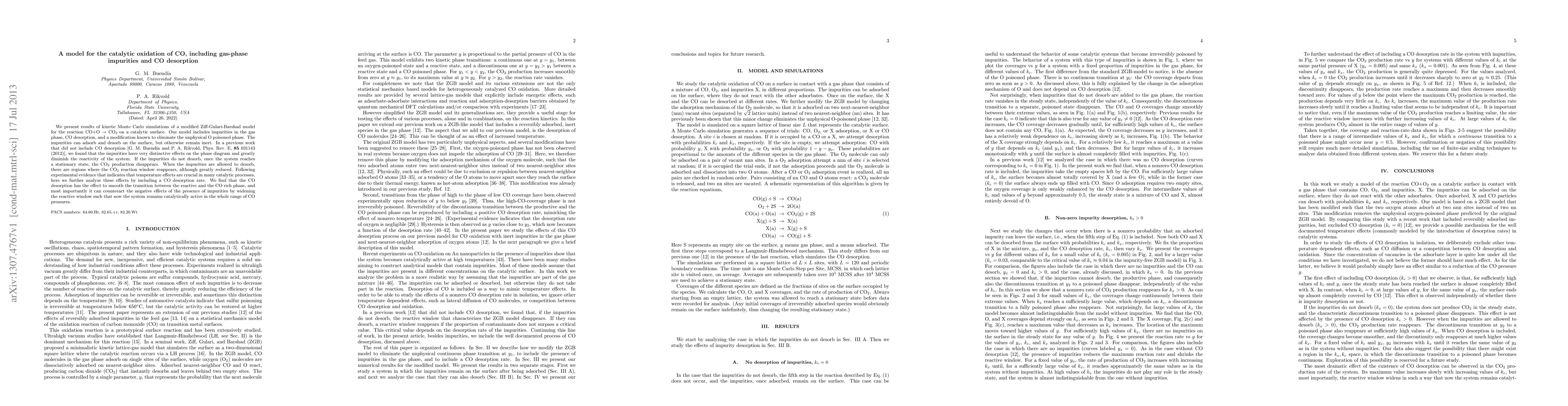 This paper uses kinetic Monte Carlo simulations to study a modified Ziff-Gulari-Barshad model for CO oxidation on a catalytic surface, incorporating gas-phase impurities and CO desorption. It finds that desorption of impurities and CO can counteract the diminishing reactivity caused by inert impurities, maintaining catalytic activity across varying CO pressures.