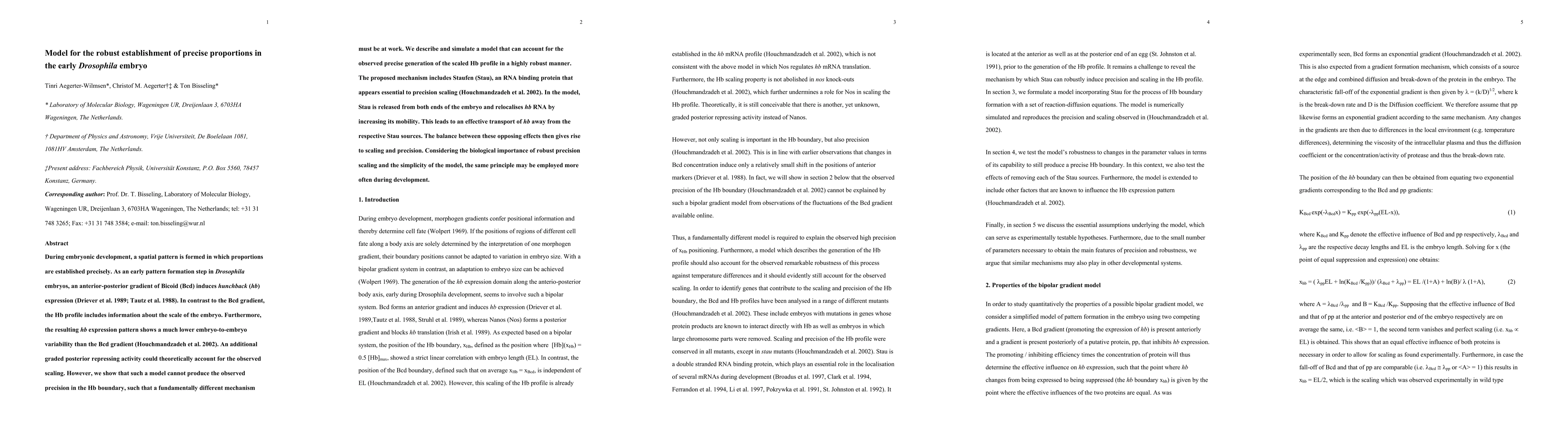 Researchers developed a model explaining how precise proportions are established in Drosophila embryos, proposing that RNA binding protein Staufen plays a key role in precision scaling.