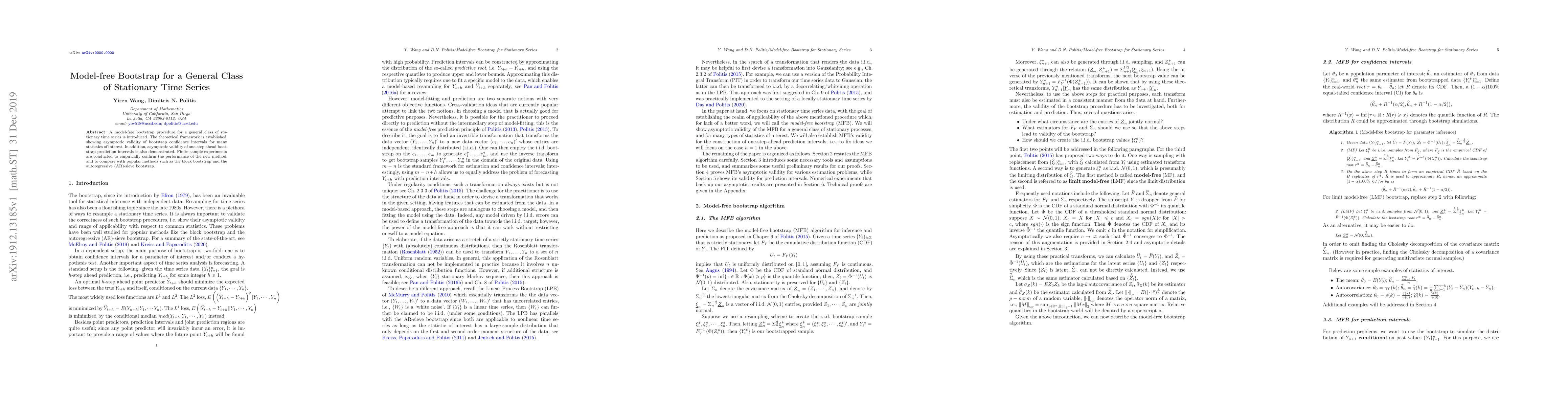 This paper introduces a model-free bootstrap method for stationary time series, proving its asymptotic validity for confidence intervals and prediction intervals. Empirical tests show its performance compared to block and AR-sieve bootstrap methods.