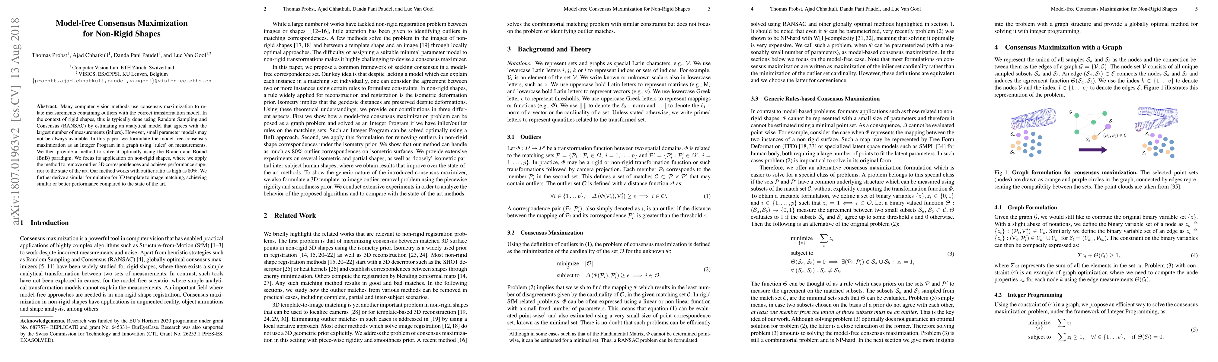 Many computer vision methods use consensus maximization to relate measurements containing outliers with the correct transformation model. In the context of rigid shapes, this is typically done using Random Sampling and Consensus (RANSAC) by estimating an analytical model that agrees with the largest number of measurements (inliers). However, small parameter models may not be always available. In this paper, we formulate the model-free consensus maximization as an Integer Program in a graph using `rules' on measurements. We then provide a method to solve it optimally using the Branch and Bound (BnB) paradigm. We focus its application on non-rigid shapes, where we apply the method to remove outlier 3D correspondences and achieve performance superior to the state of the art. Our method works with outlier ratio as high as 80\%. We further derive a similar formulation for 3D template to image matching, achieving similar or better performance compared to the state of the art.