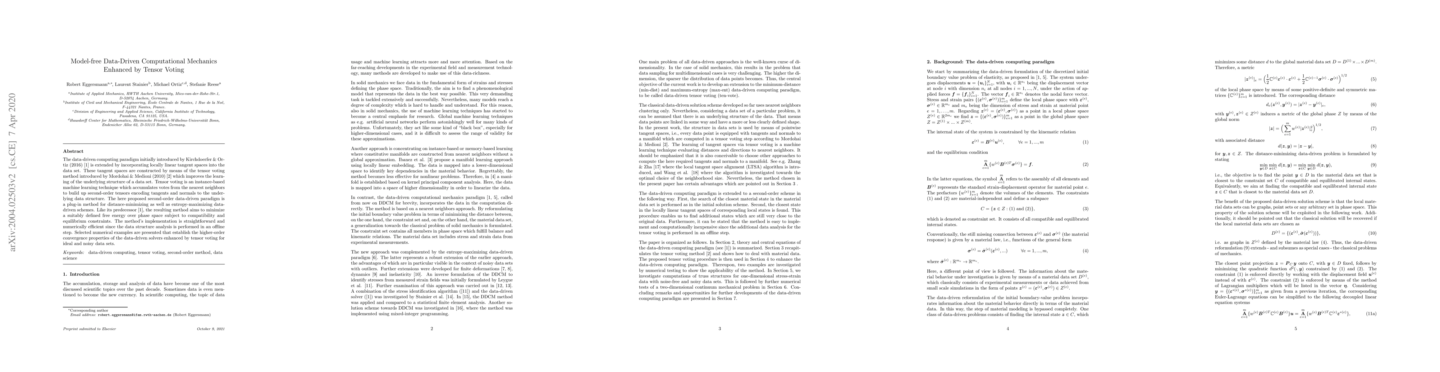 This paper extends the data-driven computational mechanics paradigm by integrating tensor voting to construct locally linear tangent spaces, enhancing the learning of data set structures. The proposed method, efficient and straightforward to implement, achieves higher-order convergence in numerical simulations.