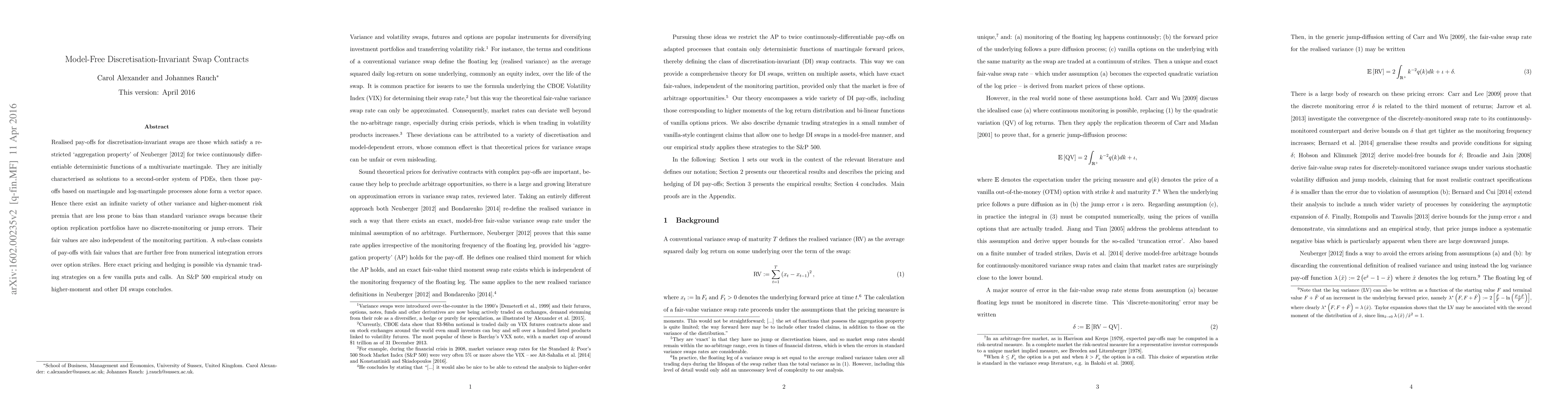 This paper develops a model-free approach to discretisation-invariant swap contracts, showing that their fair values are independent of monitoring and free from numerical integration errors. It demonstrates exact pricing and hedging via dynamic trading strategies, and concludes with an empirical study on S&P 500 higher-moment swaps.