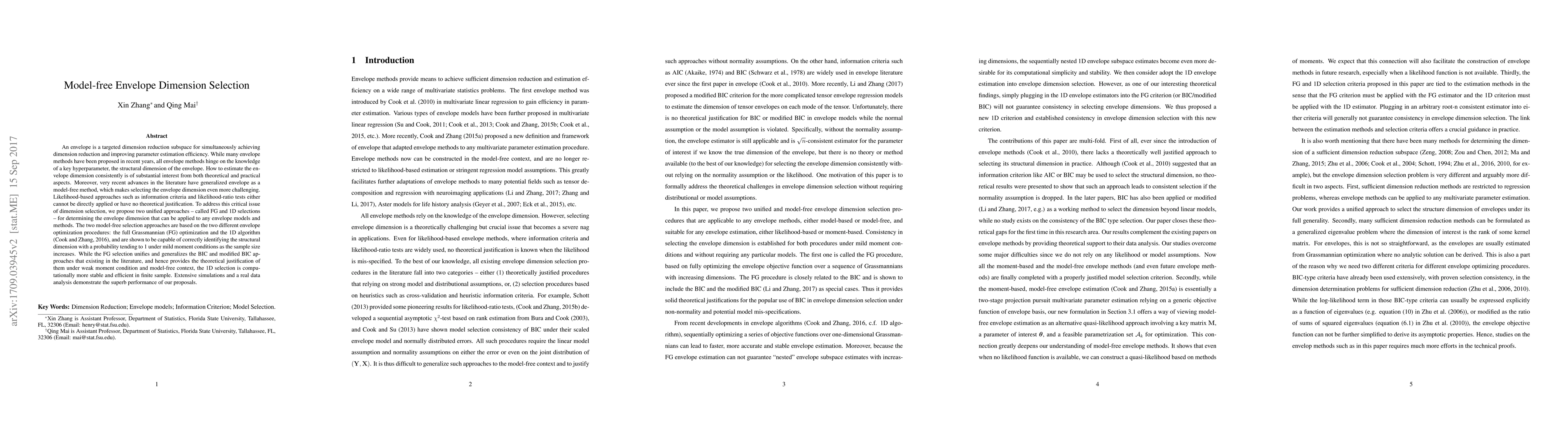 This paper proposes two model-free approaches, FG and 1D selections, for determining the envelope dimension in dimension reduction methods. These methods aim to consistently identify the structural dimension without relying on traditional likelihood-based approaches, and they demonstrate superior performance in simulations and real data analysis.
