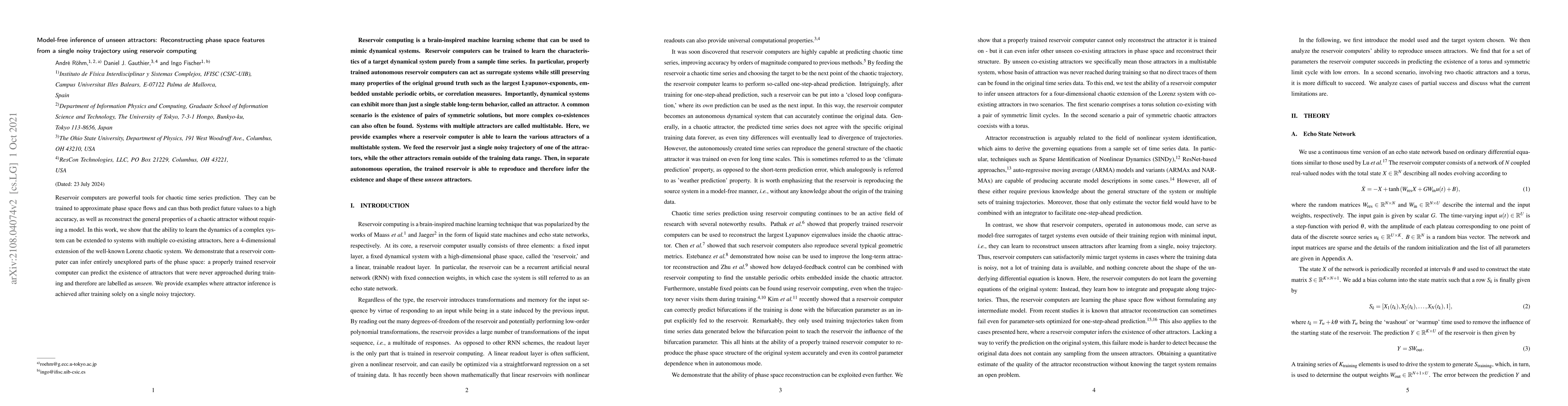 This paper demonstrates that reservoir computing can predict and reconstruct the dynamics of complex systems, including unseen attractors, from a single noisy trajectory. It shows that trained reservoir computers can infer unexplored parts of the phase space, even for systems with multiple attractors, without requiring a predefined model.