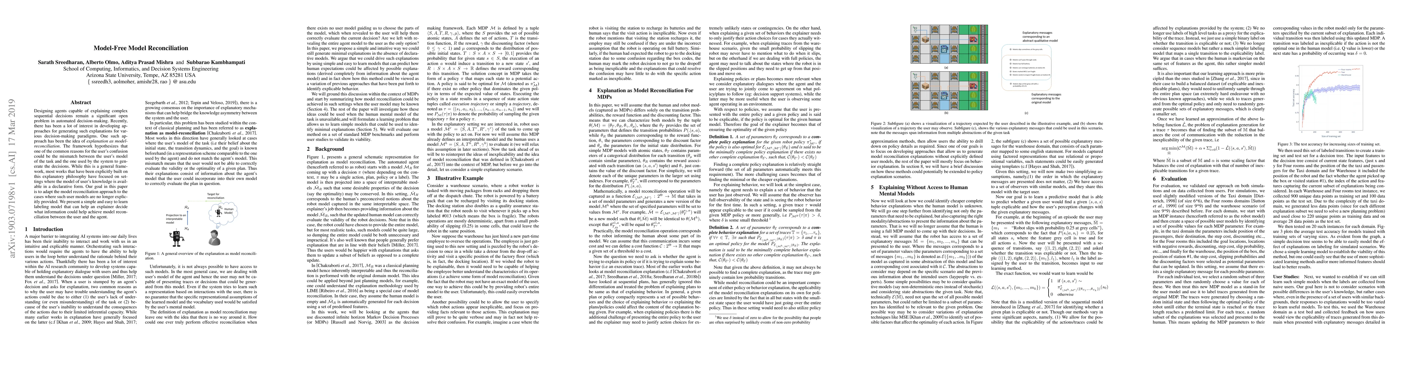Designing agents capable of explaining complex sequential decisions remain a significant open problem in automated decision-making. Recently, there has been a lot of interest in developing approaches for generating such explanations for various decision-making paradigms. One such approach has been the idea of {\em explanation as model-reconciliation}. The framework hypothesizes that one of the common reasons for the user's confusion could be the mismatch between the user's model of the task and the one used by the system to generate the decisions. While this is a general framework, most works that have been explicitly built on this explanatory philosophy have focused on settings where the model of user's knowledge is available in a declarative form. Our goal in this paper is to adapt the model reconciliation approach to the cases where such user models are no longer explicitly provided. We present a simple and easy to learn labeling model that can help an explainer decide what information could help achieve model reconciliation between the user and the agent.