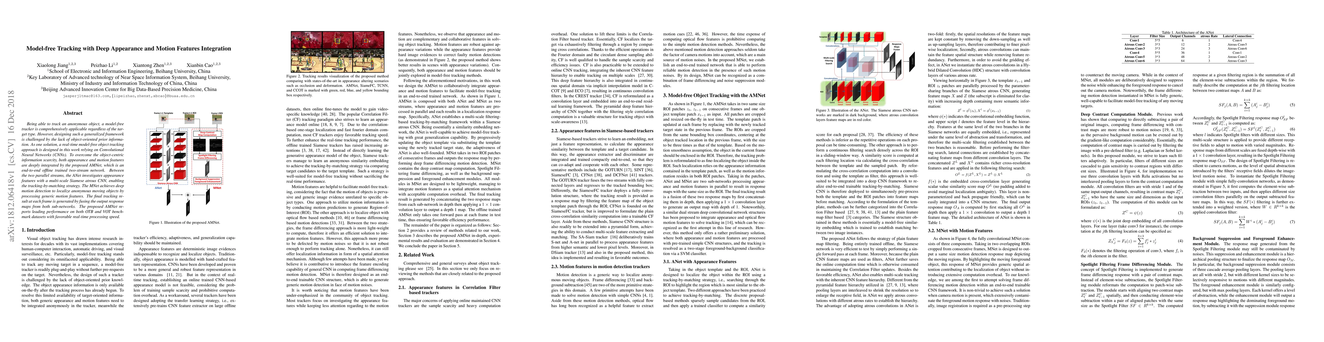 This paper proposes AMNet, a model-free object tracker using CNNs that integrates deep appearance and motion features through a two-stream network. The ANet focuses on appearance via a multi-scale Siamese CNN, while the MNet detects motion, enabling real-time tracking of anonymous objects with leading performance on benchmark datasets.