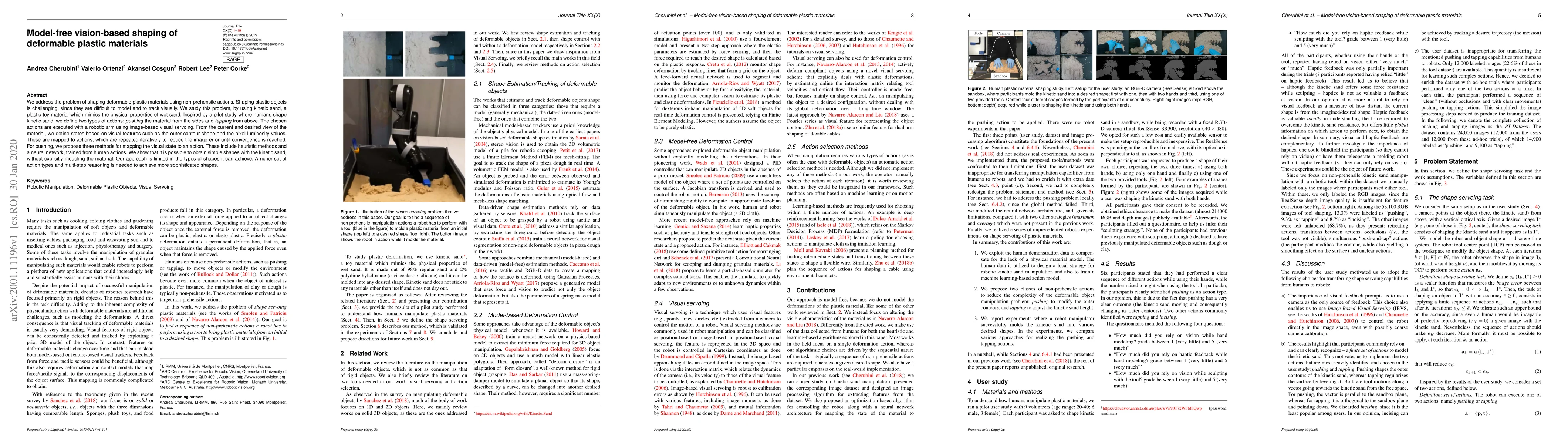 Researchers developed a model-free vision-based system to shape deformable plastic materials like kinetic sand using robotic arm actions, achieving simple shapes without explicit material modeling.