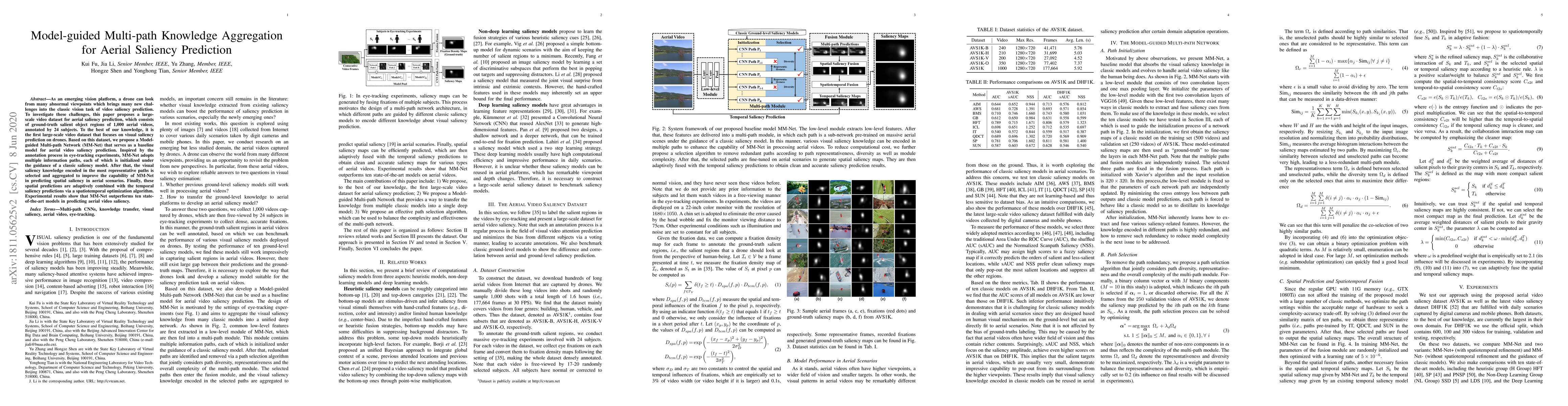 A new model called MM-Net improves aerial video saliency prediction by using multiple information paths guided by classic saliency models, outperforming 10 state-of-the-art models in experiments.
