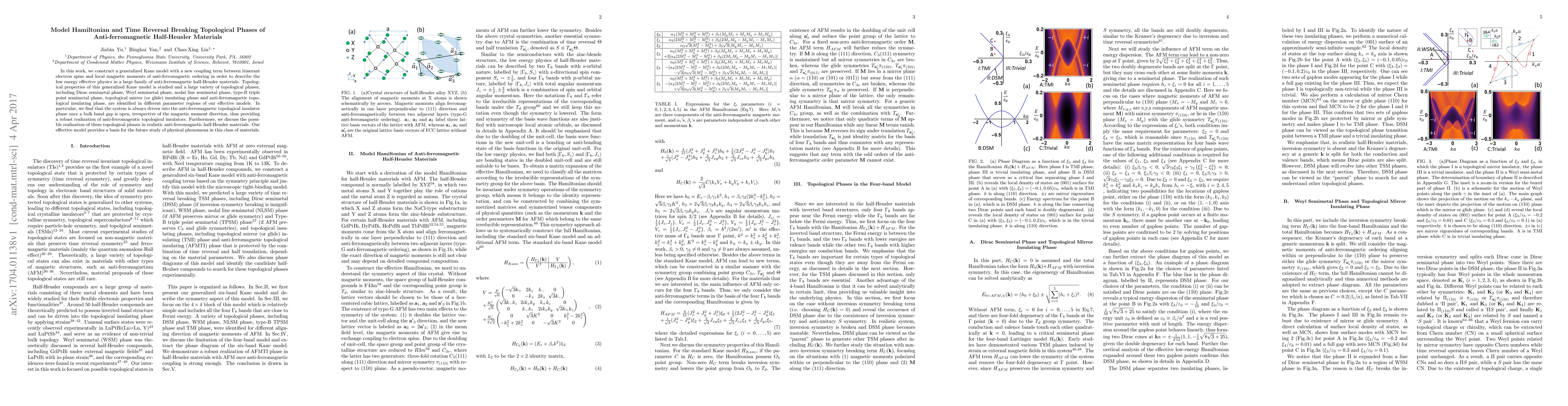 This paper constructs a generalized Kane model for anti-ferromagnetic half-Heusler materials, identifying various topological phases including Dirac, Weyl, and nodal line semimetals, and anti-ferromagnetic topological insulators. The study reveals that these materials robustly exhibit anti-ferromagnetic topological insulating behavior once a band gap opens.