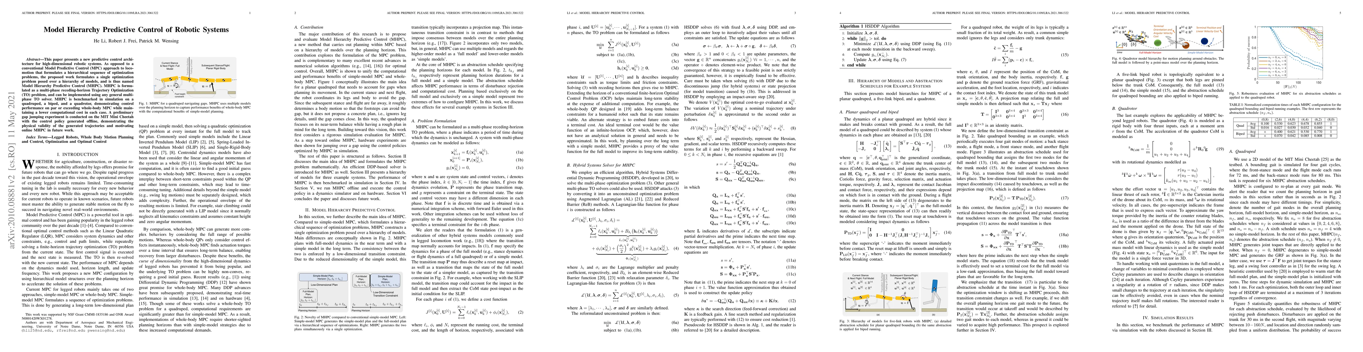 A new predictive control approach called Model Hierarchy Predictive Control (MHPC) offers improved control performance for high-dimensional robotic systems at lower computational cost.