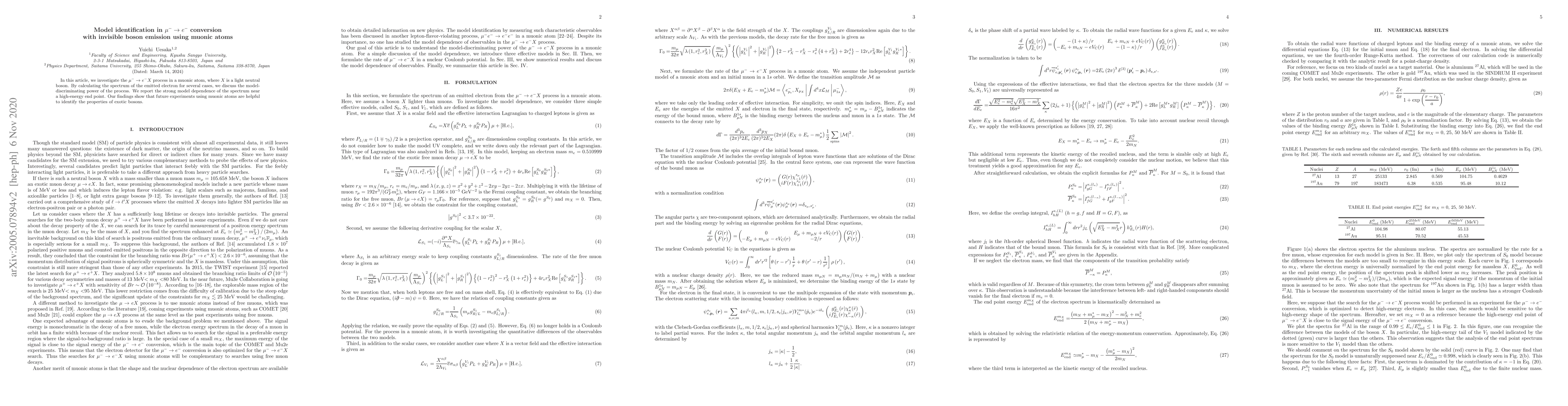 In this article, we investigate the $\mu^-\to e^-X$ process in a muonic atom, where $X$ is a light neutral boson. By calculating the spectrum of the emitted electron for several cases, we discuss the model-discriminating power of the process. We report the strong model dependence of the spectrum near a high-energy endpoint. Our findings show that future experiments using muonic atoms are helpful to identify the properties of exotic bosons.