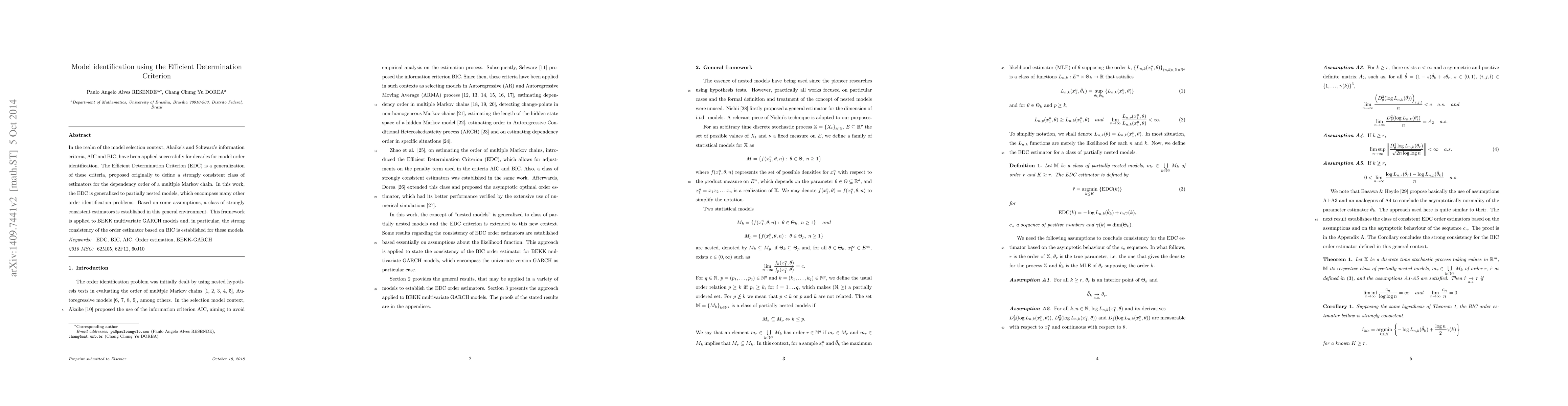 In the realm of the model selection context, Akaike's and Schwarz's information criteria, AIC and BIC, have been applied successfully for decades for model order identification. The Efficient Determination Criterion (EDC) is a generalization of these criteria, proposed originally to define a strongly consistent class of estimators for the dependency order of a multiple Markov chain. In this work, the EDC is generalized to partially nested models, which encompass many other order identification problems. Based on some assumptions, a class of strongly consistent estimators is established in this general environment. This framework is applied to BEKK multivariate GARCH models and, in particular, the strong consistency of the order estimator based on BIC is established for these models.