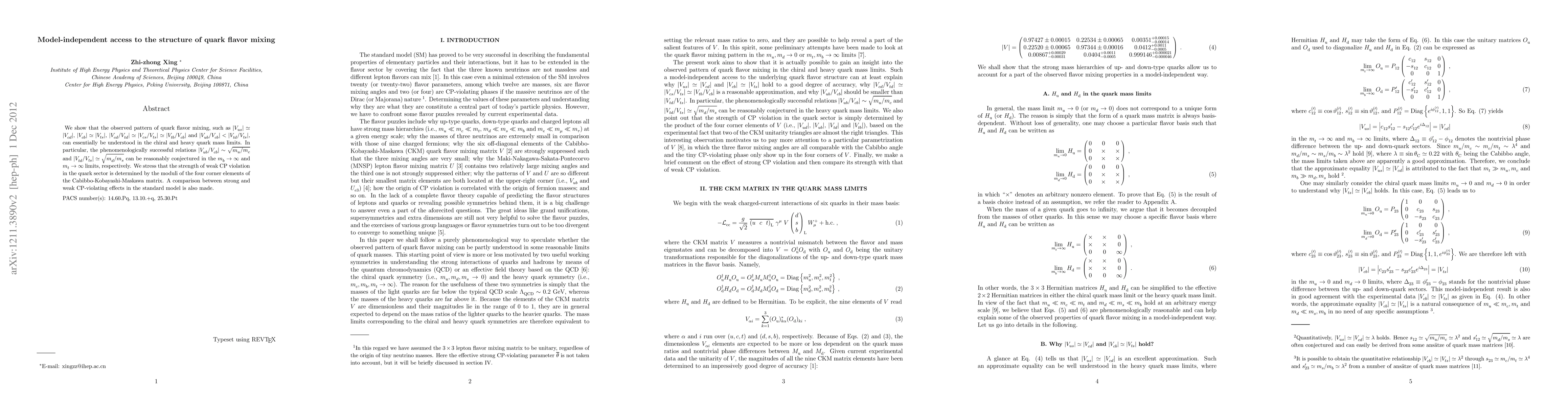 We show that the observed pattern of quark flavor mixing, such as |V_{us}| \simeq |V_{cd}|, |V_{cb}| \simeq |V_{ts}|, |V_{cd}/V_{td}| \simeq |V_{cs}/V_{ts}| \simeq |V_{tb}/V_{cb}| and |V_{ub}/V_{cb}| < |V_{td}/V_{ts}|, can essentially be understood in the chiral and heavy quark mass limits. In particular, the phenomenologically successful relations |V_{ub}/V_{cb}| \sim \sqrt{m_u/m_c} and |V_{td}/V_{ts}| \simeq \sqrt{m_d/m_s} can be reasonably conjectured in the m_b \to \infty and m_t \to \infty limits, respectively. We stress that the strength of weak CP violation in the quark sector is determined by the moduli of the four corner elements of the Cabibbo-Kobayashi-Maskawa matrix. A comparison between strong and weak CP-violating effects in the standard model is also made.