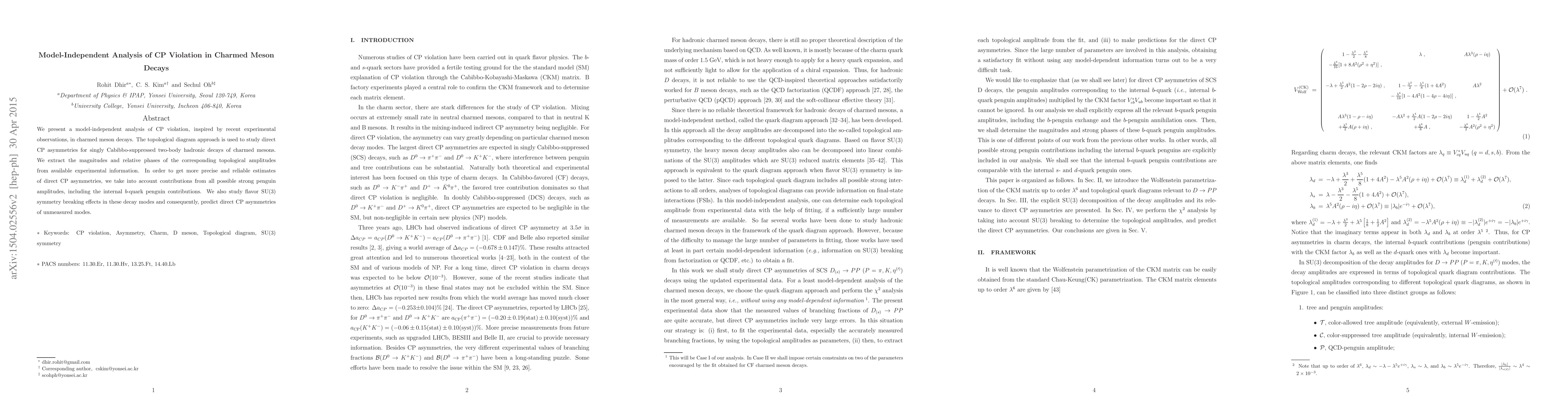 This paper conducts a model-independent analysis of CP violation in charmed meson decays using the topological diagram approach, focusing on singly Cabibbo-suppressed two-body decays. It extracts topological amplitudes' magnitudes and phases, considering all strong penguin contributions for more precise CP asymmetry estimates and predicts asymmetries for unmeasured decay modes.