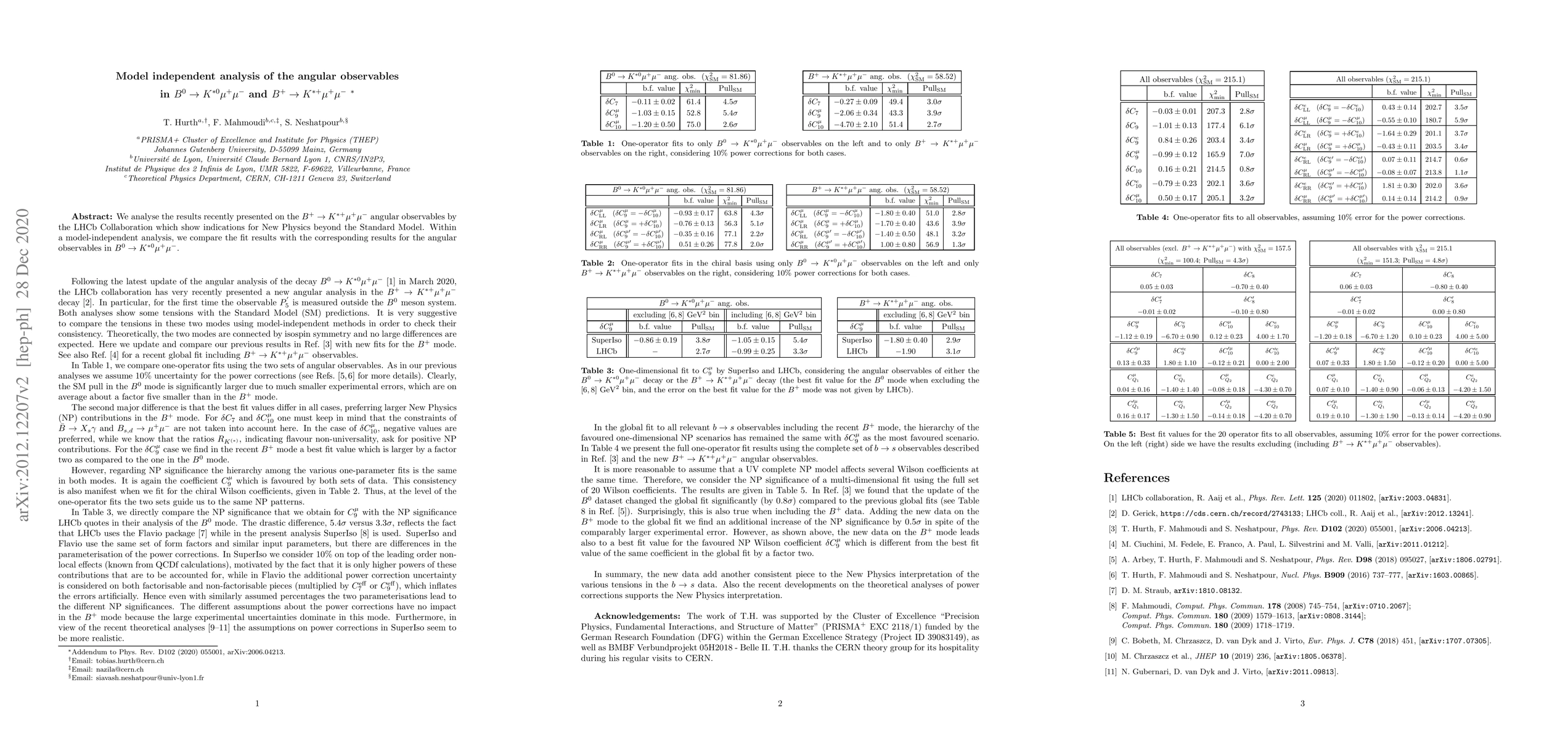 We analyse the results recently presented on the $B^{+} \to K^{*+} \mu^+ \mu^-$ angular observables by the LHCb Collaboration which show indications for New Physics beyond the Standard Model. Within a model-independent analysis, we compare the fit results with the corresponding results for the angular observables in $B^{0} \to K^{*0} \mu^+ \mu^-$.
