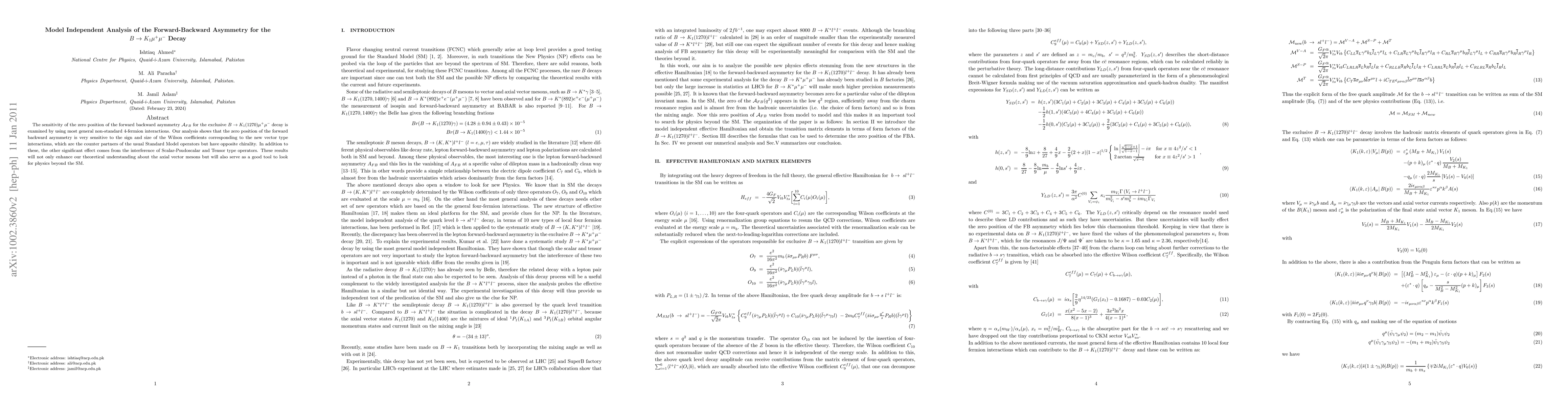 The sensitivity of the zero position of the forward backward asymmetry $\mathcal{A}_{FB}$ for the exclusive $B\rightarrow K_{1}(1270)\mu^{+}\mu^{-}$ decay is examined by using most general non-standard 4-fermion interactions. Our analysis shows that the zero position of the forward backward asymmetry is very sensitive to the sign and size of the Wilson coefficients corresponding to the new vector type interactions, which are the counter partners of the usual Standard Model operators but have opposite chirality. In addition to these, the other significant effect comes from the interference of Scalar-Pseudoscalar and Tensor type operators. These results will not only enhance our theoretical understanding about the axial vector mesons but will also serve as a good tool to look for physics beyond the SM.