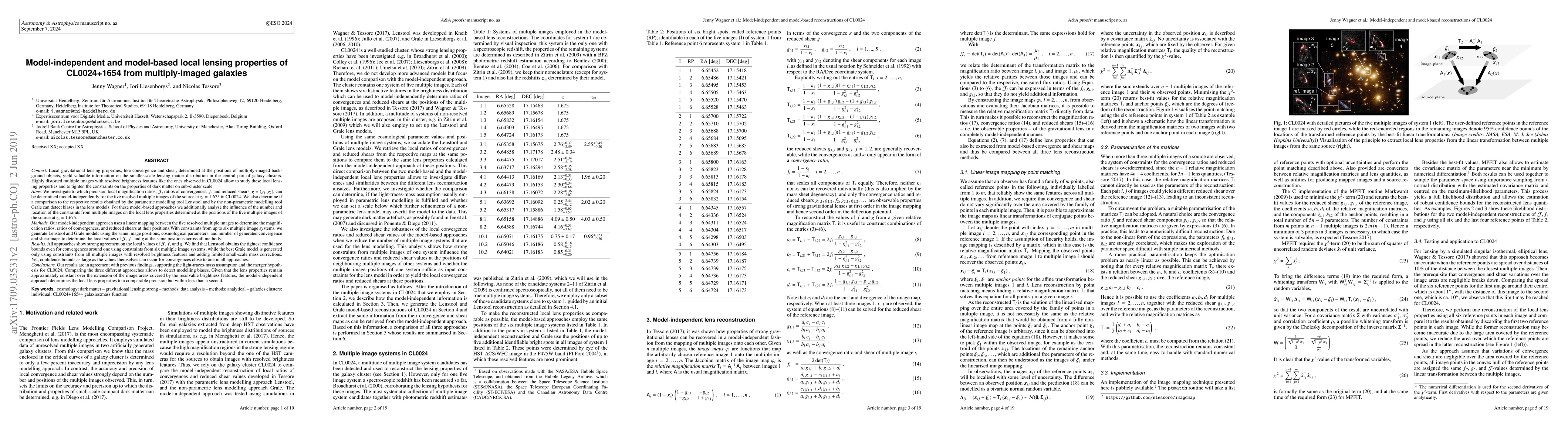 We investigate to which precision local magnification ratios, $\mathcal{J}$, ratios of convergences, $f$, and reduced shears, $g = (g_{1}, g_{2})$, can be determined model-independently for the five resolved multiple images of the source at $z_\mathrm{s}=1.675$ in CL0024. We also determine if a comparison to the respective results obtained by the parametric modelling program Lenstool and by the non-parametric modelling program Grale can detect biases in the lens models. For these model-based approaches we additionally analyse the influence of the number and location of the constraints from multiple images on the local lens properties determined at the positions of the five multiple images of the source at $z_\mathrm{s}=1.675$. All approaches show high agreement on the local values of $\mathcal{J}$, $f$, and $g$. We find that Lenstool obtains the tightest confidence bounds even for convergences around one using constraints from six multiple image systems, while the best Grale model is generated only using constraints from all multiple images with resolved brightness features and adding limited small-scale mass corrections. Yet, confidence bounds as large as the values themselves can occur for convergences close to one in all approaches. Our results are in agreement with previous findings, supporting the light-traces-mass assumption and the merger hypothesis for CL0024. Comparing the three different approaches allows to detect modelling biases. Given that the lens properties remain approximately constant over the extension of the image areas covered by the resolvable brightness features, the model-independent approach determines the local lens properties to a comparable precision but within less than a second. (shortened)