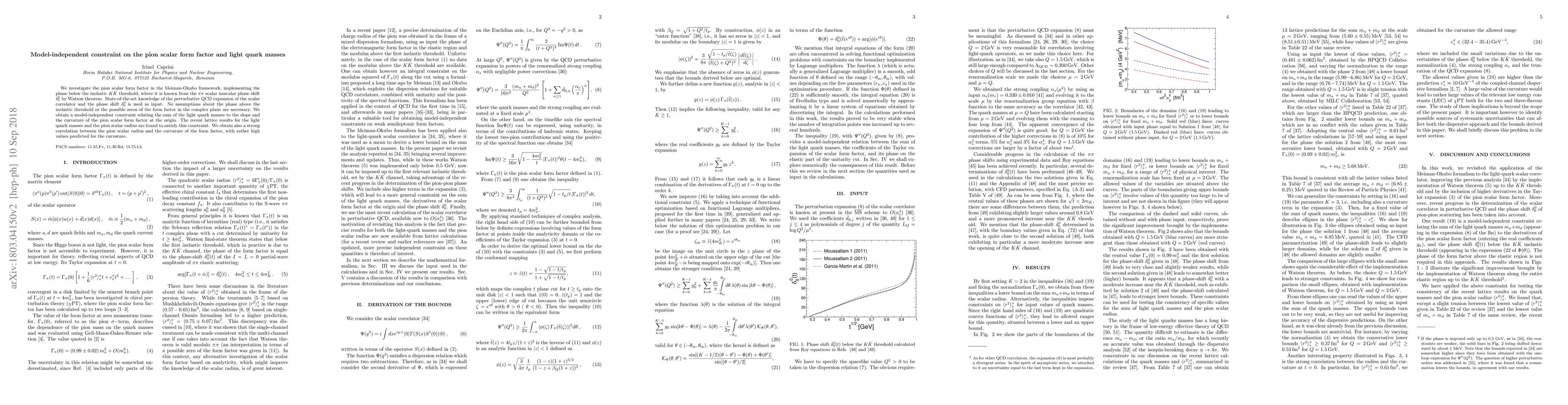 This paper derives a model-independent constraint on the pion scalar form factor using the Meissner-Okubo relation and perturbative QCD, relating light quark masses to the pion's form factor properties. It finds a strong correlation between the pion scalar radius and the curvature of the form factor, predicting high values for the latter.