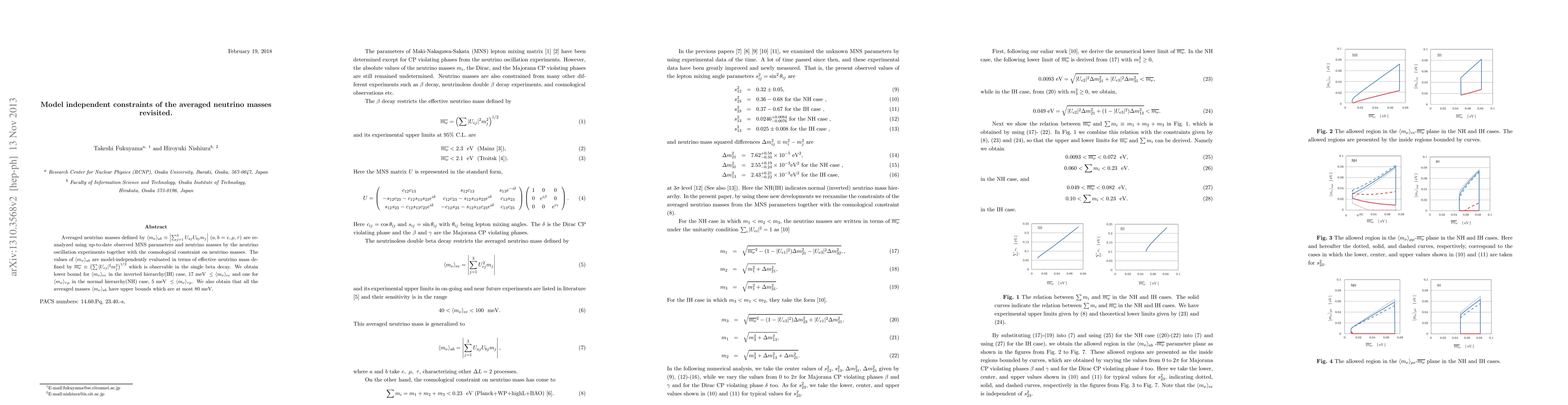 Averaged neutrino masses defined by $\la m_\nu\ra_{ab} \equiv\left| \sum_{j=1}^{3}U_{aj}U_{bj}m_j\right|$ ($a,b=e,\mu,\tau$) are reanalyzed using up-to-date observed MNS parameters and neutrino masses by the neutrino oscillation experiments together with the cosmological constraint on neutrino masses. The values of $\la m_\nu\ra_{ab}$ are model-independently evaluated in terms of effective neutrino mass defined by $\overline{m_\nu}\equiv\left(\sum |U_{ej}|^2m_j^2\right)^{1/2}$ which is observable in the single beta decay. We obtain lower bound for $\langle m_\nu \rangle_{ee}$ in the inverted hierarchy(IH) case, $17~\mbox{meV} \leq \langle m_\nu \rangle_{ee}$ and one for $\langle m_\nu \rangle_{\tau \mu}$ in the normal hierarchy(NH) case, $5~\mbox{meV}\leq \langle m_\nu \rangle_{\tau \mu}$. We also obtain that all the averaged masses $\la m_\nu\ra_{ab}$ have upper bounds which are at most $80~\mbox{meV}$.