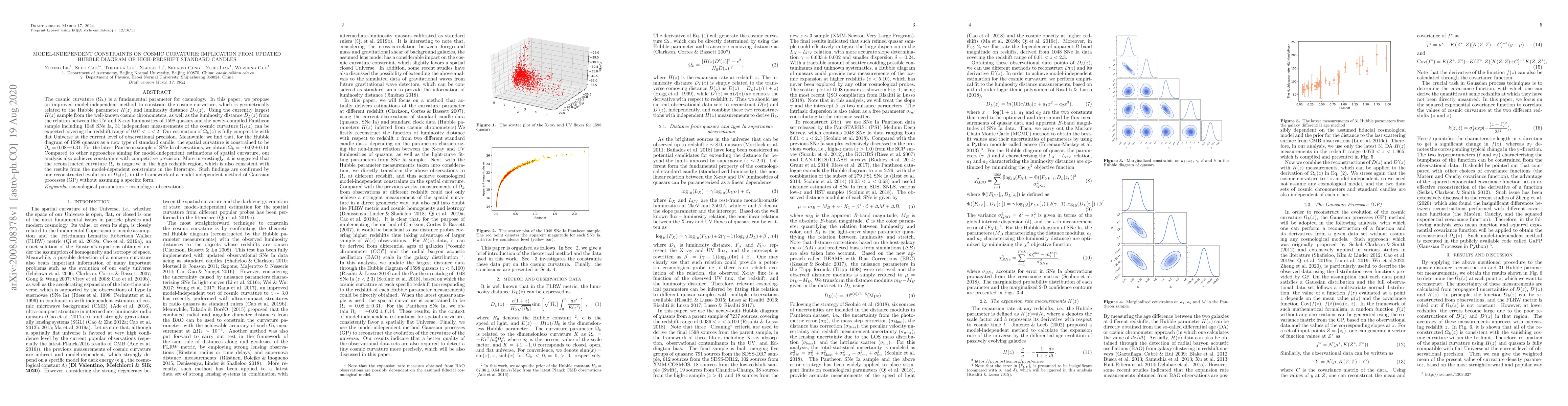 cosmic curvature, which is geometrically related to the Hubble parameter $H(z)$