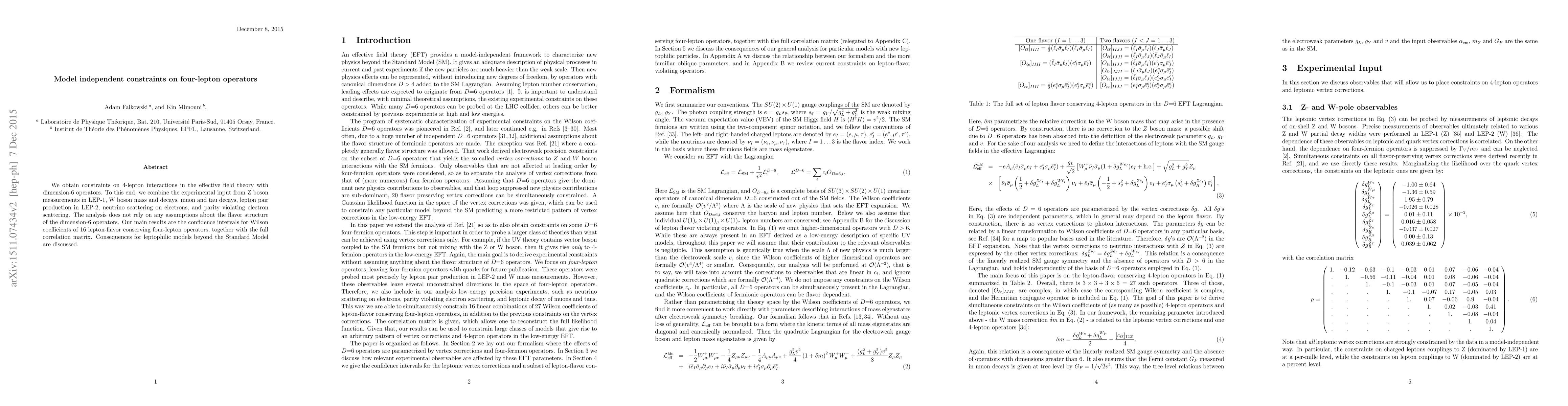 This paper derives model-independent constraints on dimension-6 four-lepton operators in effective field theory, using diverse experimental data sources. The results include confidence intervals for Wilson coefficients of 16 lepton-flavor conserving operators and implications for leptophilic models beyond the Standard Model.