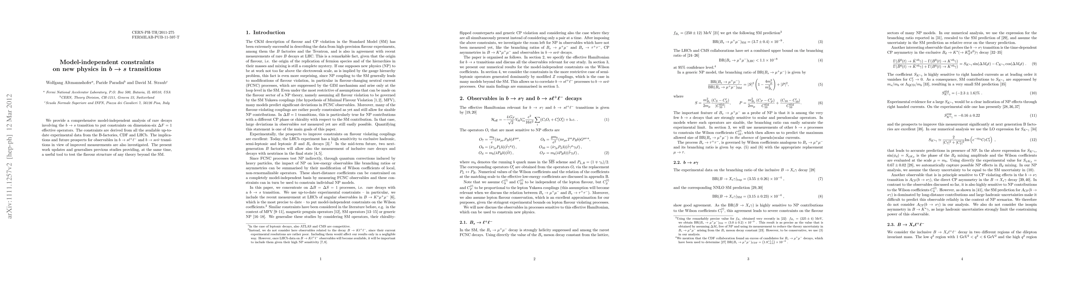 This study puts constraints on new physics in b --> s transitions using a model-independent analysis of experimental data from B-factories, CDF, and LHCb. The research provides a tool to test the flavour structure of any theory beyond the Standard Model.