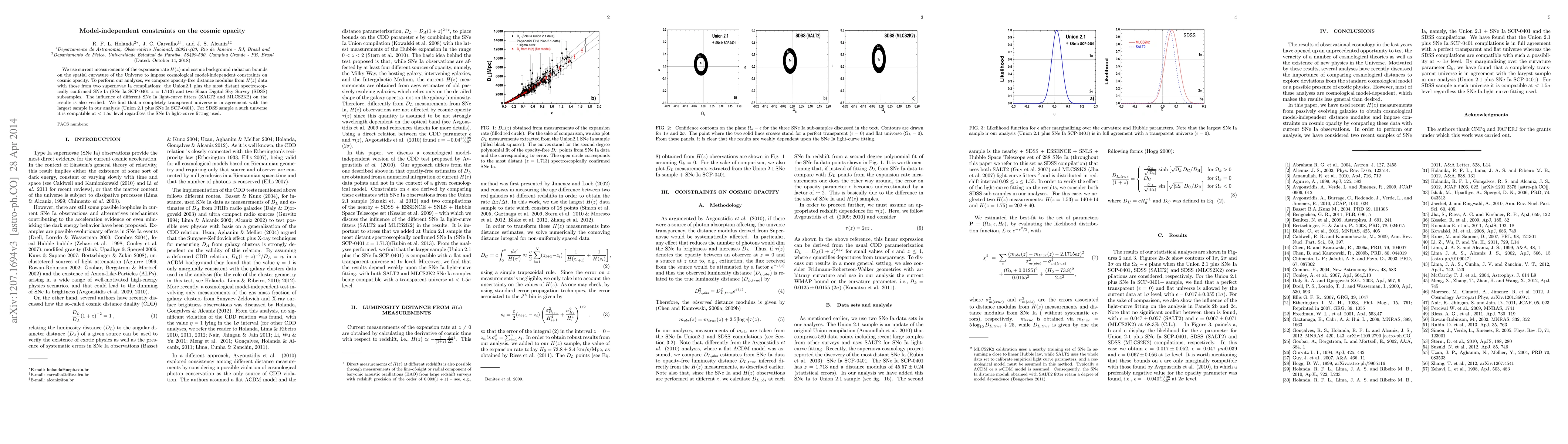 This paper imposes model-independent constraints on cosmic opacity using $H(z)$ data and cosmic microwave background measurements, comparing distance moduli from various supernovae Ia datasets. The results suggest that a transparent universe is consistent with the analyzed data, with slight incompatibility at less than 1.5σ for certain samples.