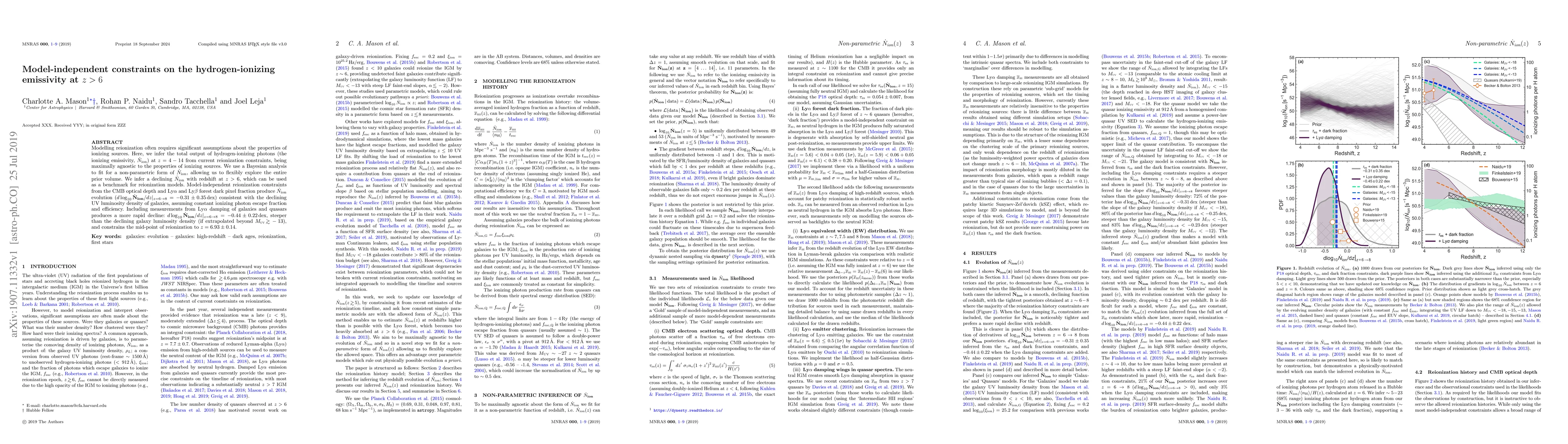 Modelling reionization often requires significant assumptions about the properties of ionizing sources. Here, we infer the total output of hydrogen-ionizing photons (the ionizing emissivity, $\dot{N}_\textrm{ion}$) at $z=4-14$ from current reionization constraints, being maximally agnostic to the properties of ionizing sources. We use a Bayesian analysis to fit for a non-parametric form of $\dot{N}_\textrm{ion}$, allowing us to flexibly explore the entire prior volume. We infer a declining $\dot{N}_\textrm{ion}$ with redshift at $z>6$, which can be used as a benchmark for reionization models. Model-independent reionization constraints from the CMB optical depth and Ly$\alpha$ and Ly$\beta$ forest dark pixel fraction produce $\dot{N}_\textrm{ion}$ evolution ($d\log_{10}\dot{N}_\textrm{ion}/dz|_{z=6\rightarrow8} = -0.31\pm0.35$ dex) consistent with the declining UV luminosity density of galaxies, assuming constant ionizing photon escape fraction and efficiency. Including measurements from Ly$\alpha$ damping of galaxies and quasars produces a more rapid decline: $d\log_{10}\dot{N}_\textrm{ion}/dz|_{z=6\rightarrow8} =-0.44\pm0.22$ dex, steeper than the declining galaxy luminosity density (if extrapolated beyond $M_\mathrm{UV} \lesssim -13$), and constrains the mid-point of reionization to $z = 6.93\pm0.14$.