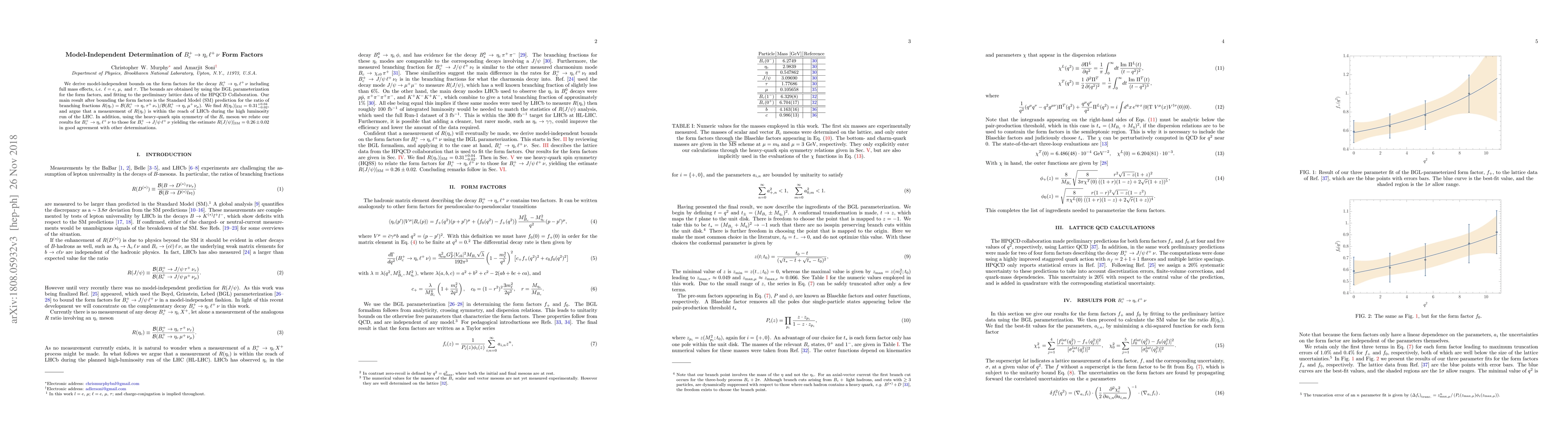This paper derives model-independent bounds on form factors for the decay $B_c^+ \to \eta_c\, \ell^+\, \nu$ using BGL parameterization and lattice data. The main result is the Standard Model prediction for the branching fraction ratio $R(\eta_c)$, finding $R(\eta_c)|_{\text{SM}} = 0.31^{+0.04}_{-0.02}$, and suggests its measurement is feasible at LHCb.